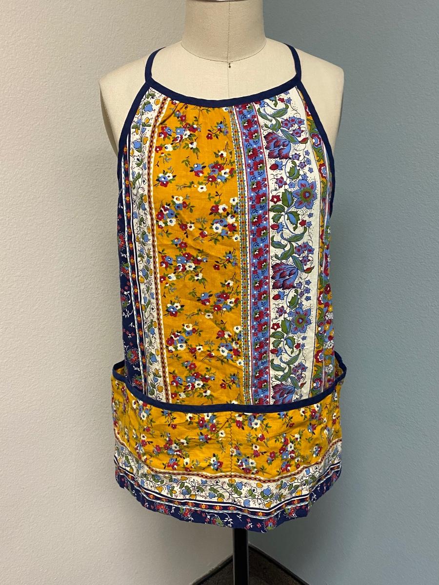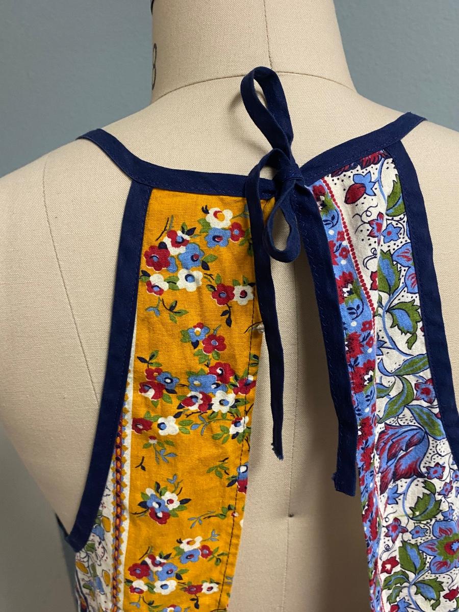 Colorful Vintage Floral Full Apron Smock Tie at Neck with Pockets