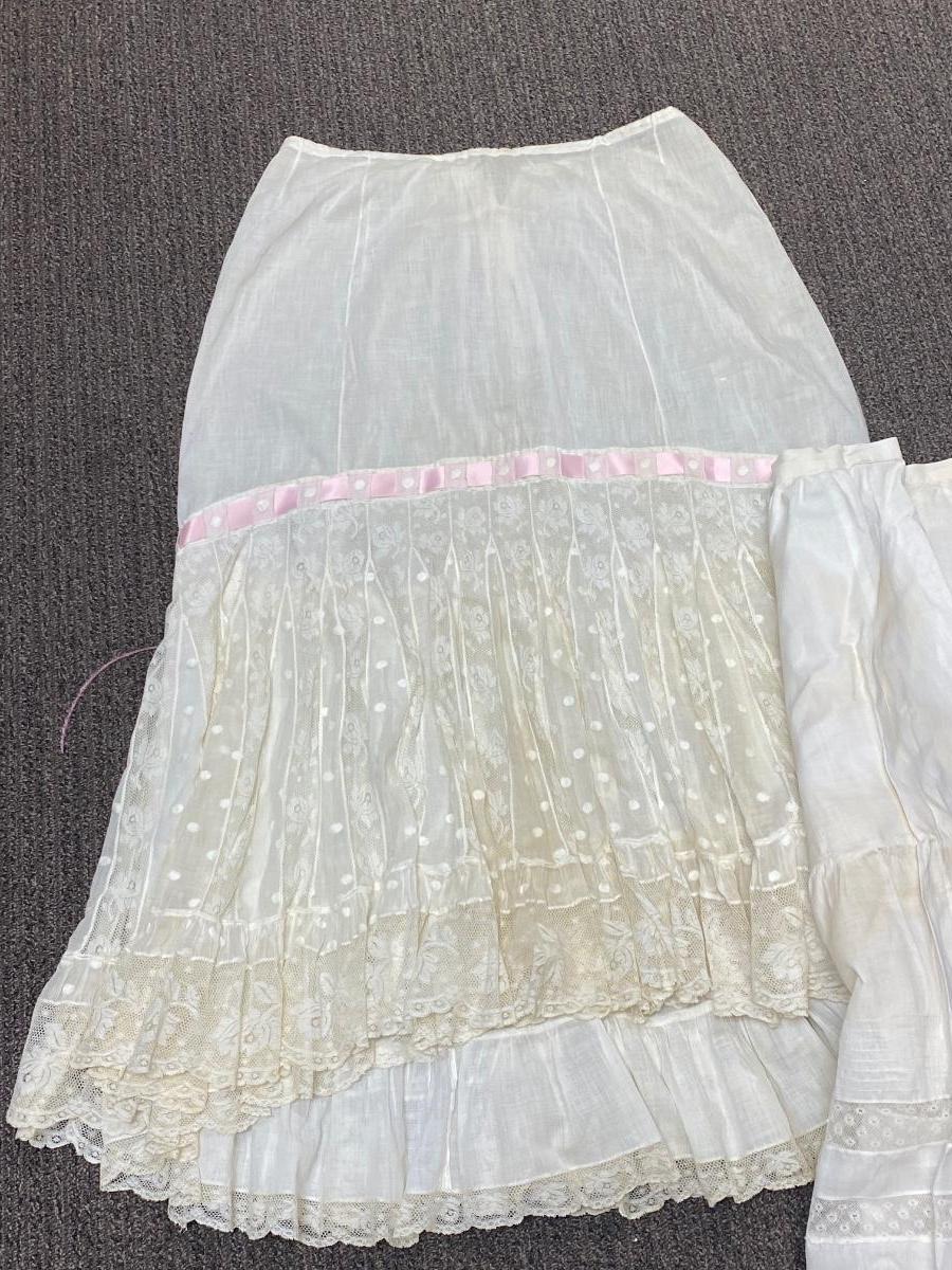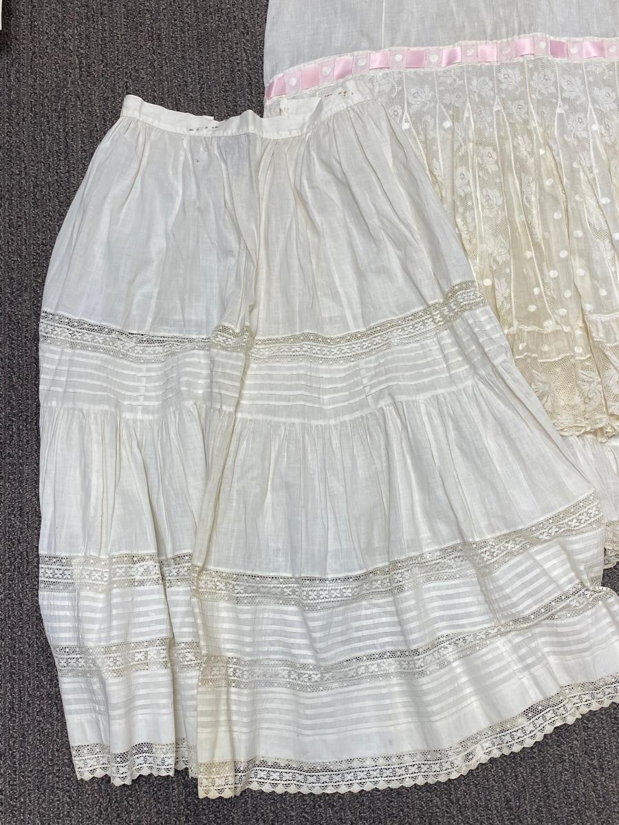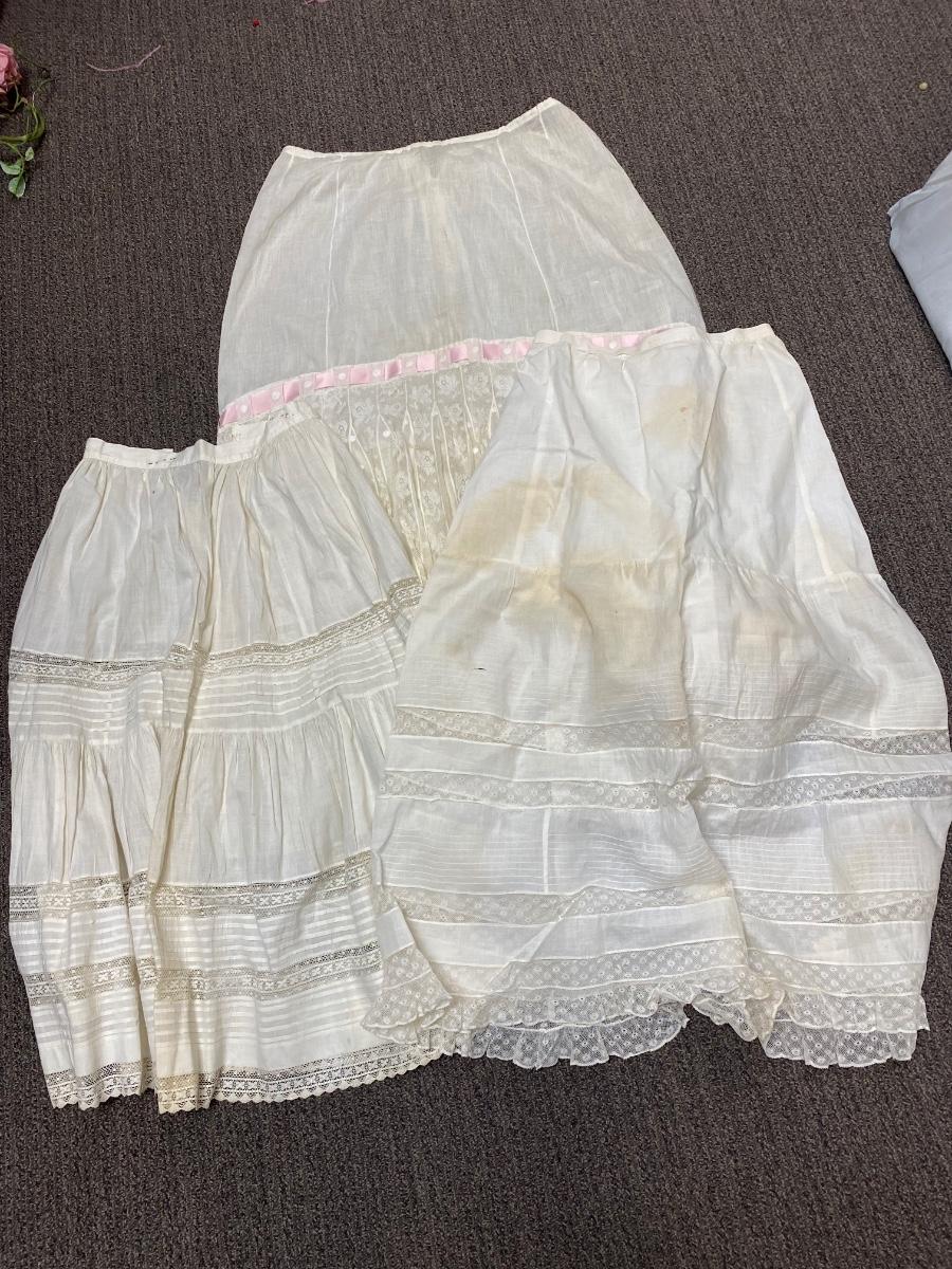 Lot of Three White Cotton Gibson Girl Victorian Skirts Petticoat