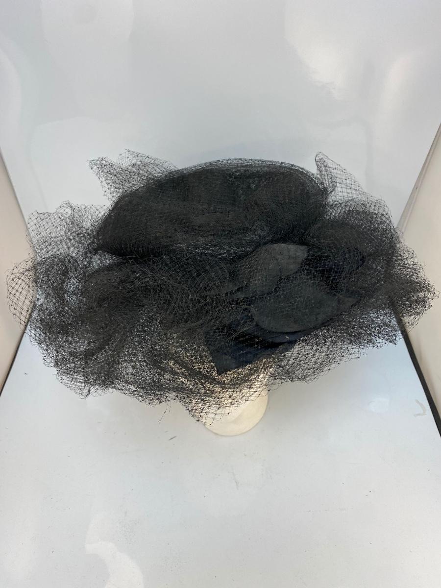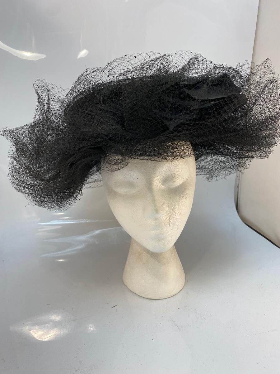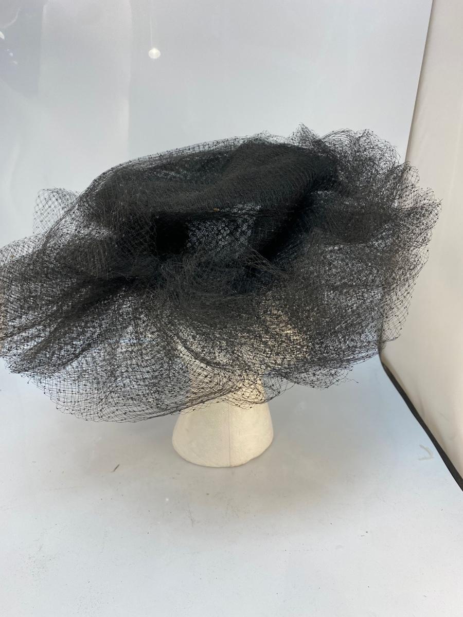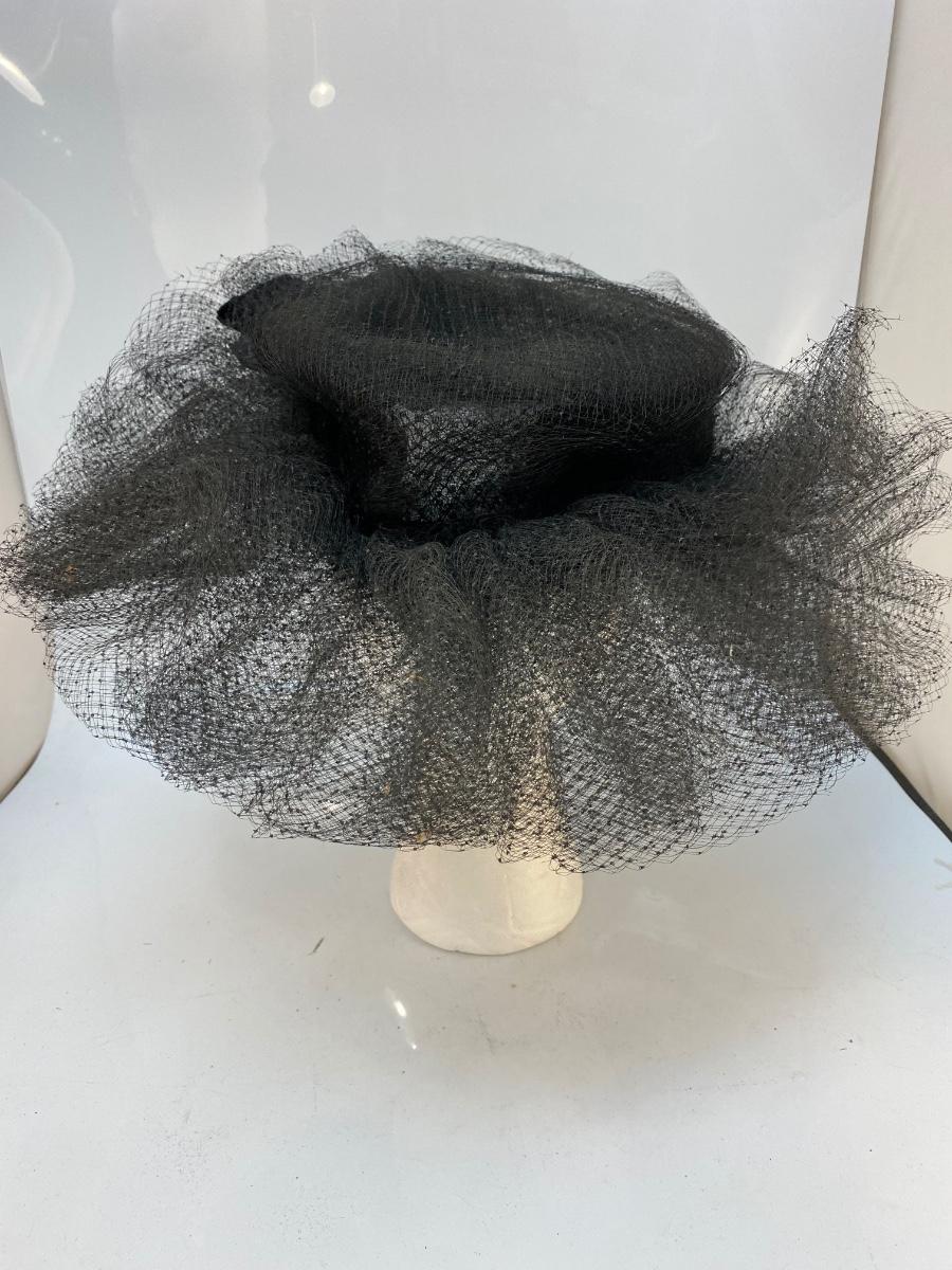Vintage Black Mesh Lace Tulle Maria Pia Hat