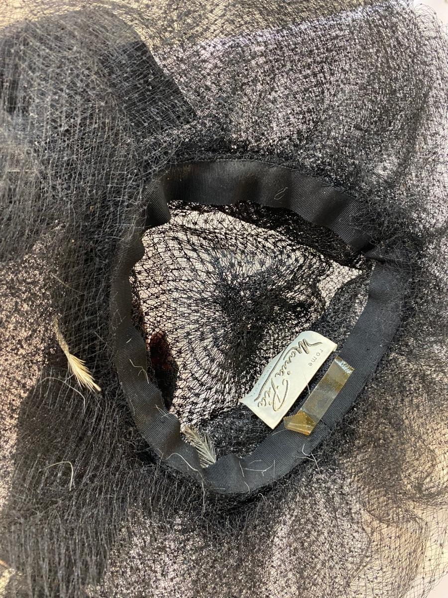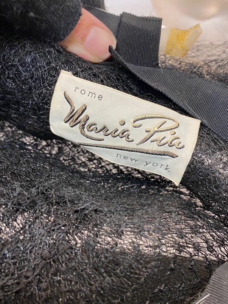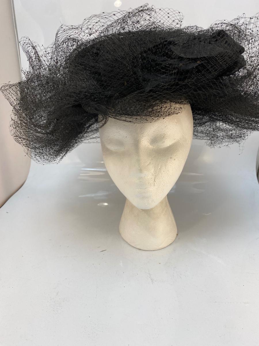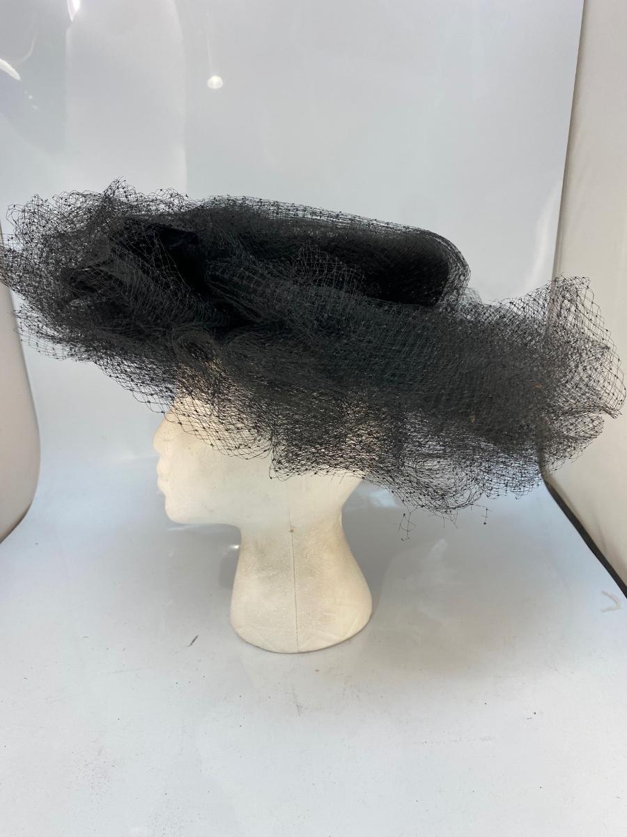 Vintage Black Mesh Lace Tulle Maria Pia Hat