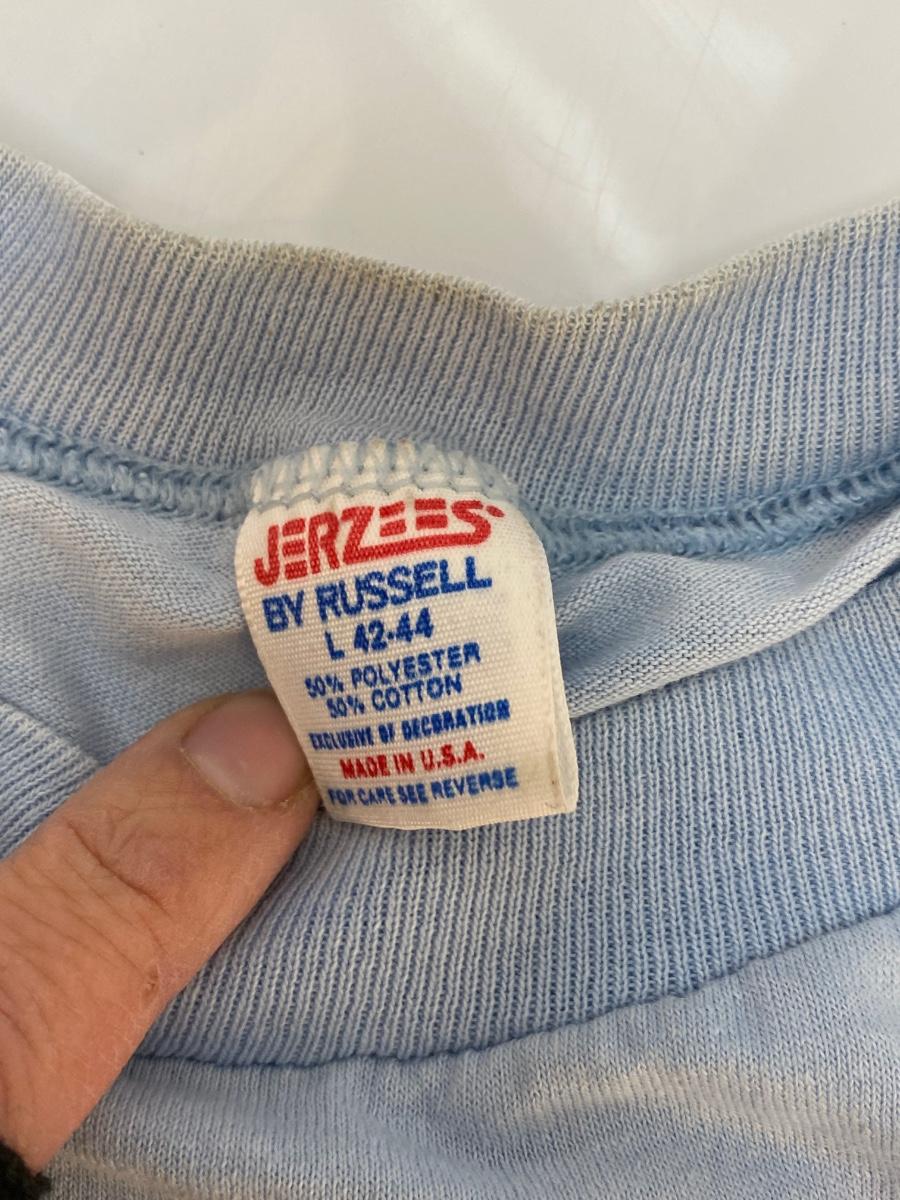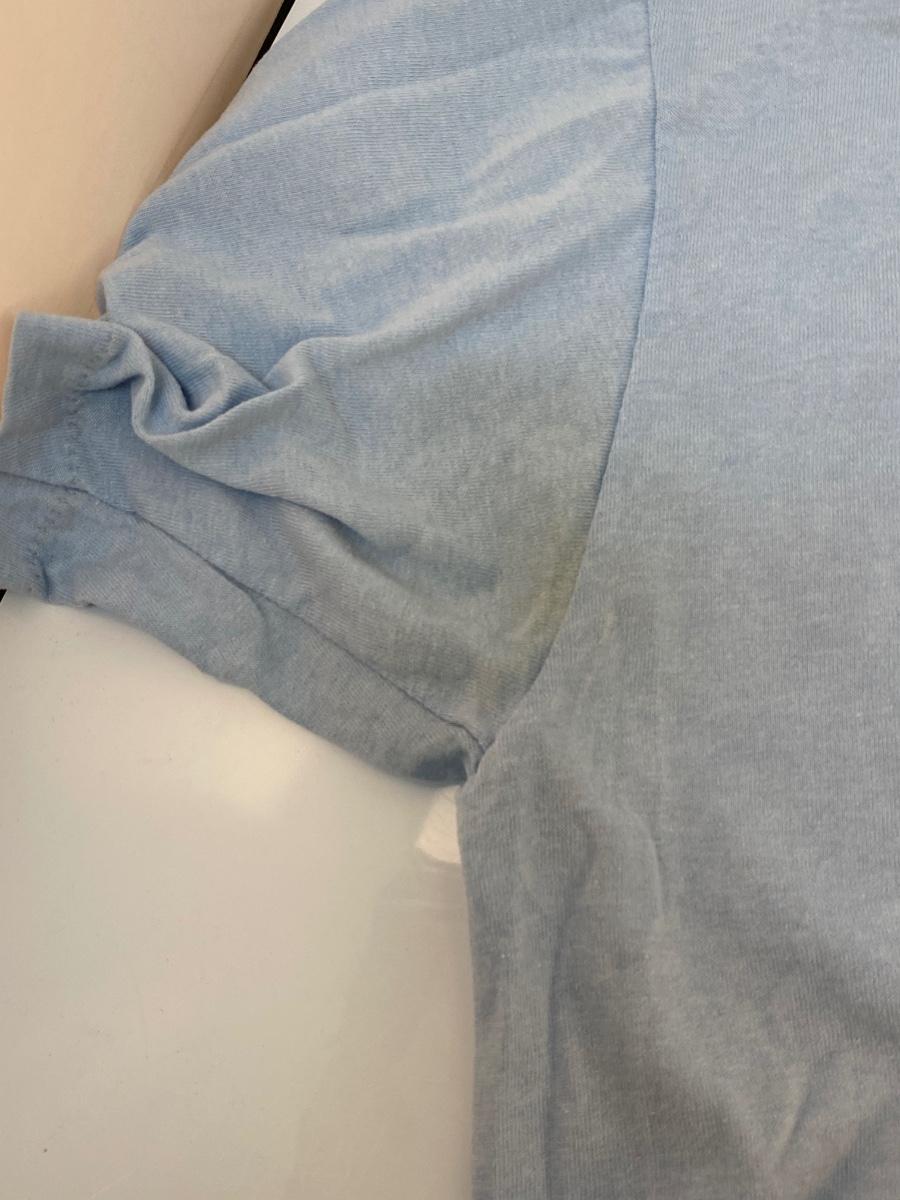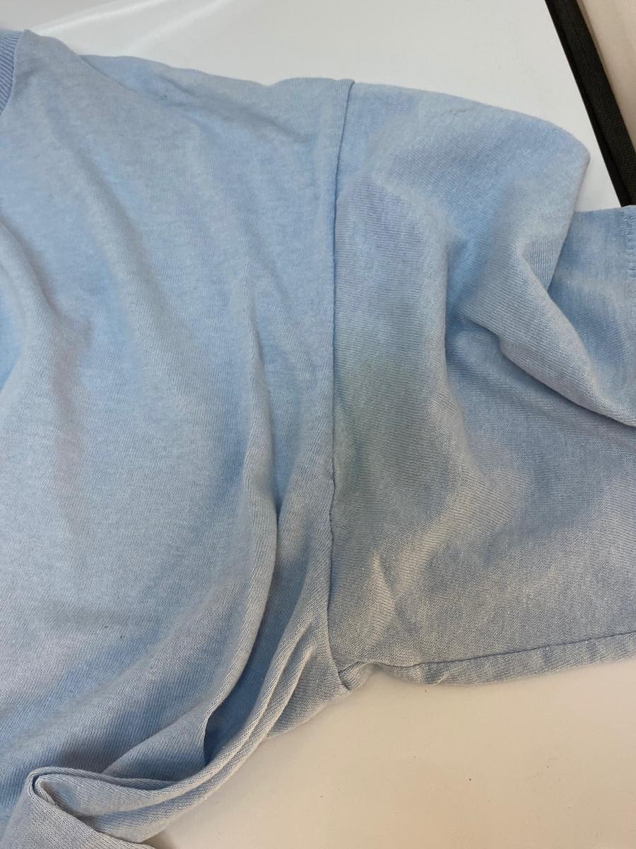 Retro Baby Blue Its Lonely at the Top Sequoia National Park Souvenir Tshirt. In vintage worn condition. There is yellowing at the armpits, general discolor from age, and a small hole below the image on front. Size large.