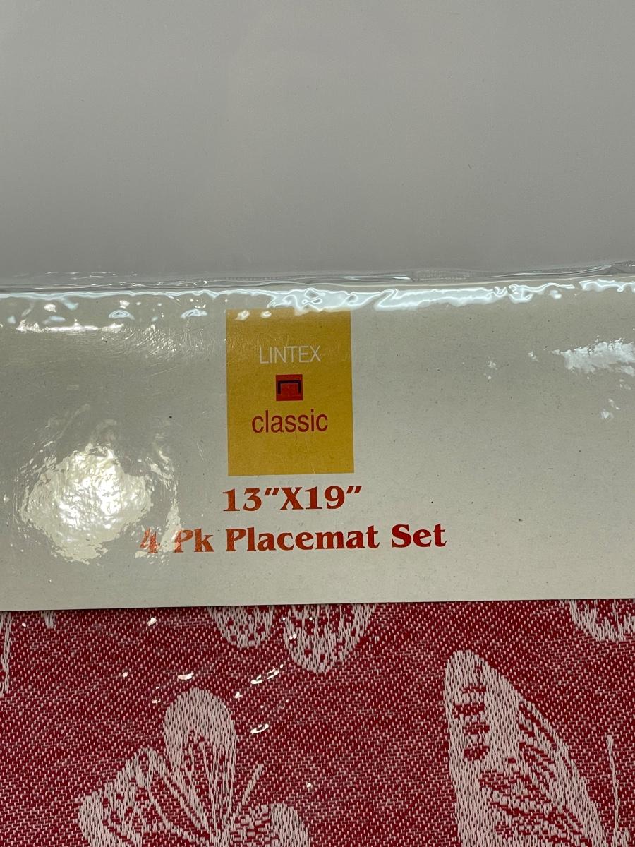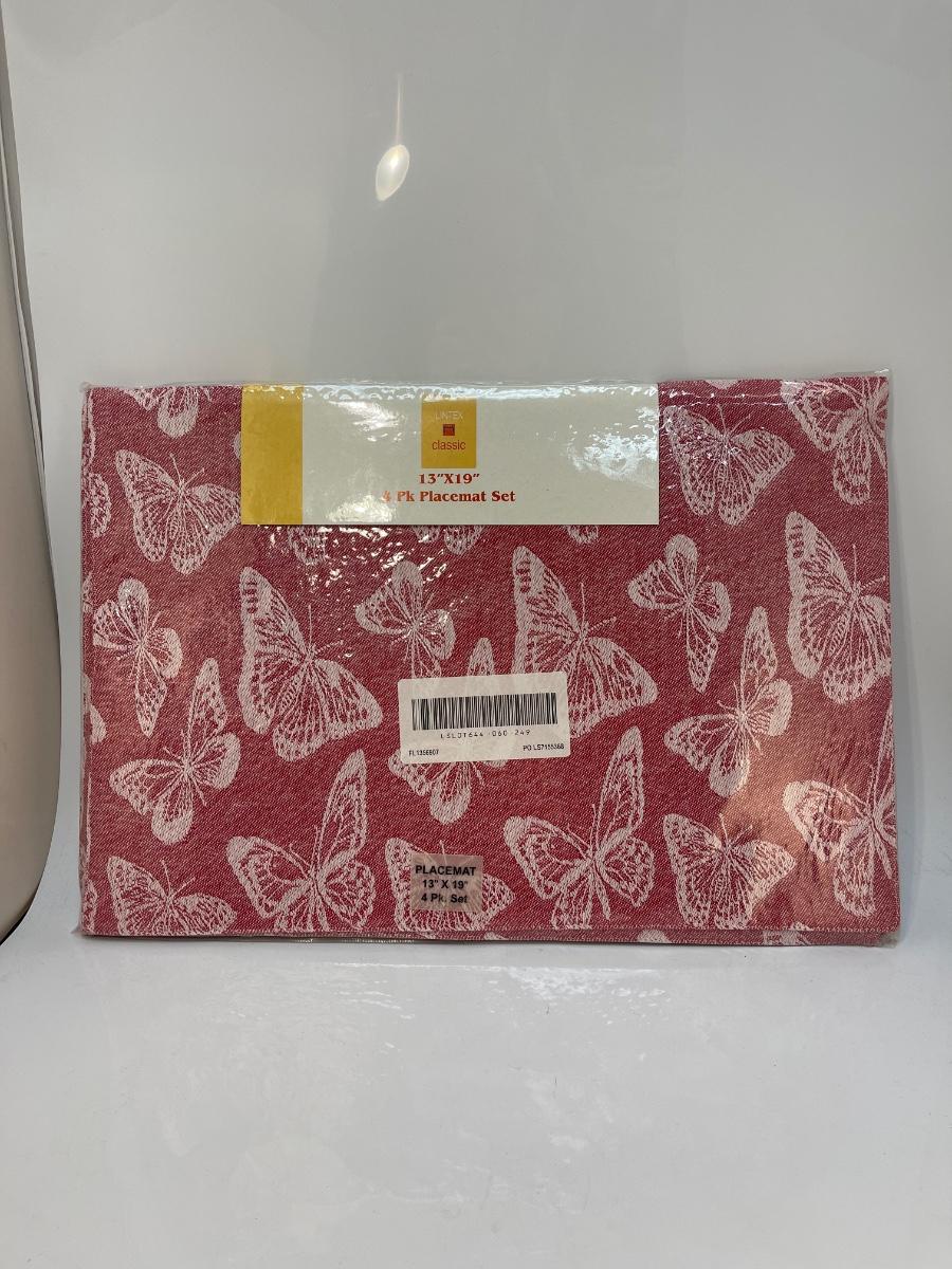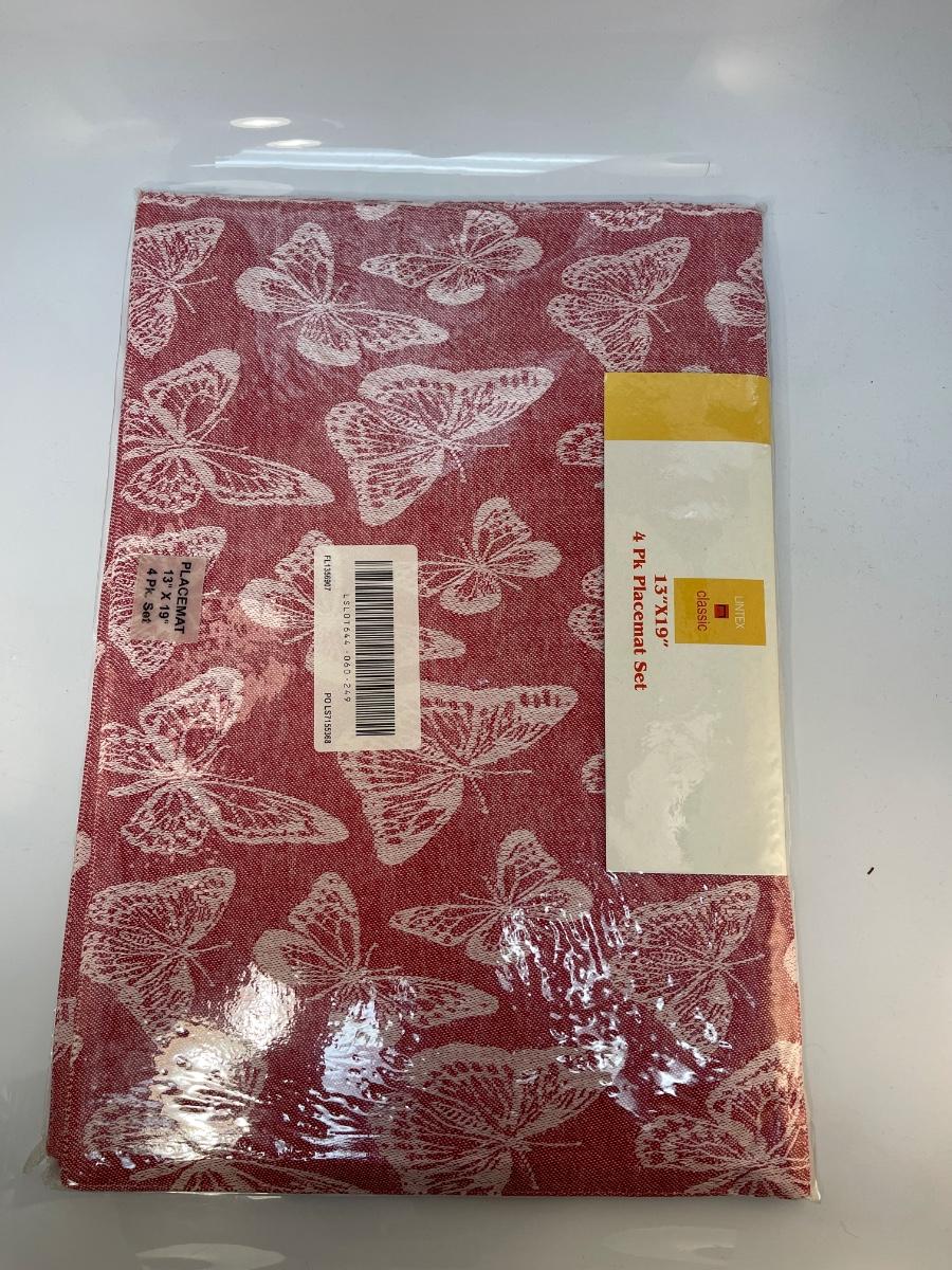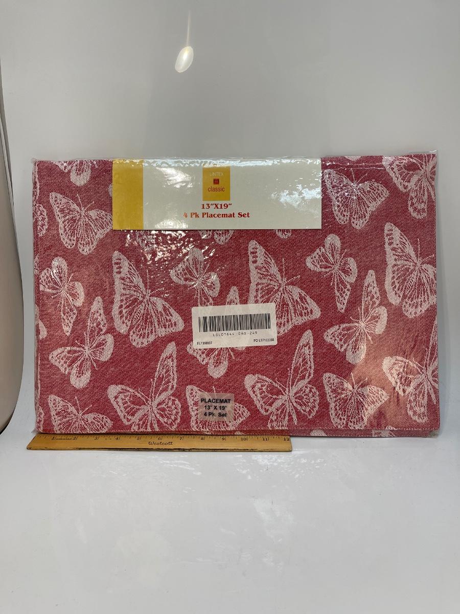 New in Package 4 Red White Butterfly Pattern Placemat Set 13"x19". New.