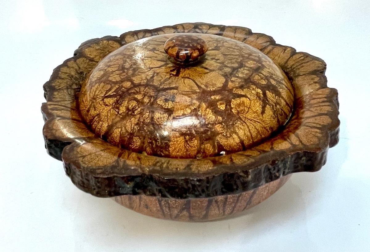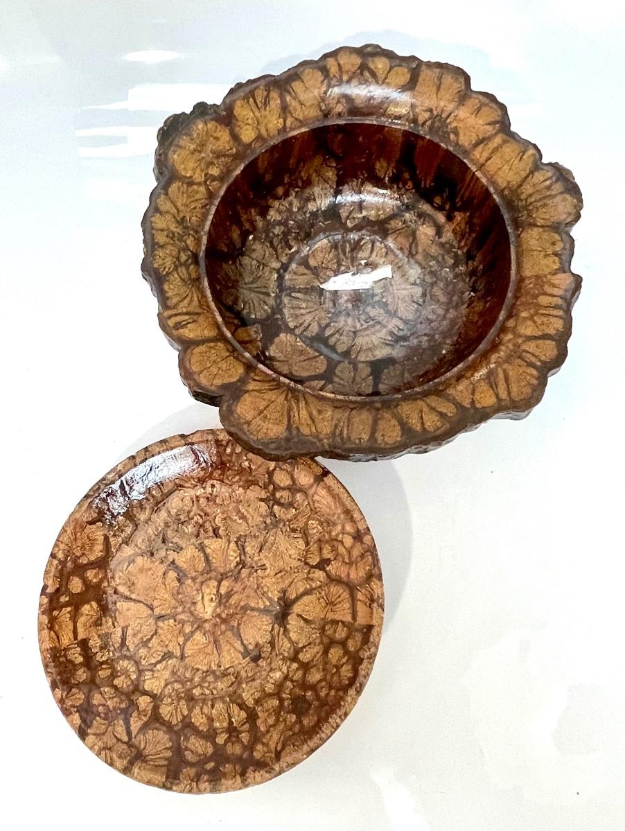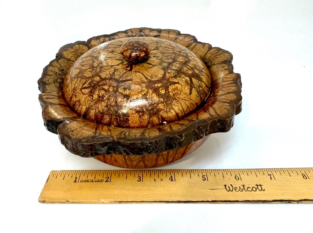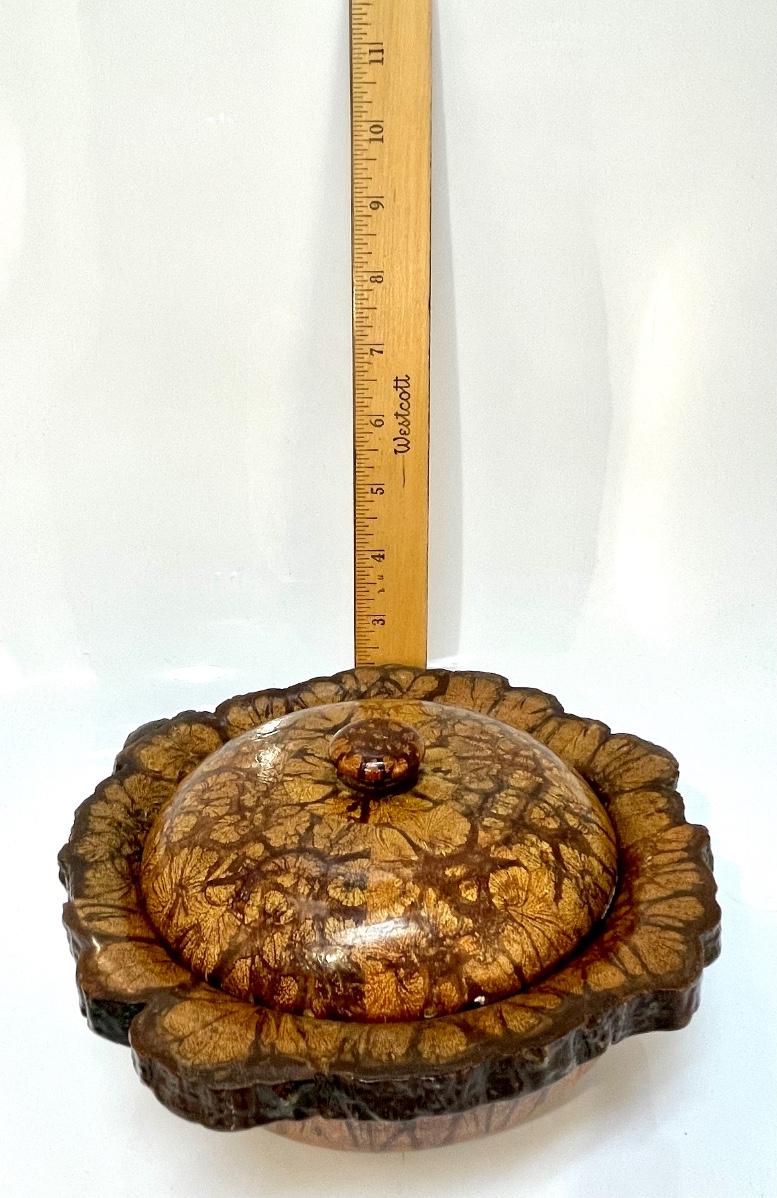 Vintage Genuine Hand Turned Chrysanthemum Wood Bowl Candy Dish with Lid