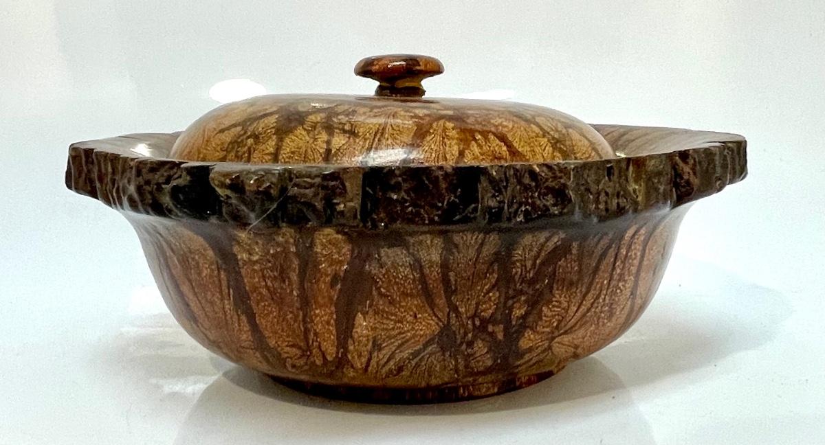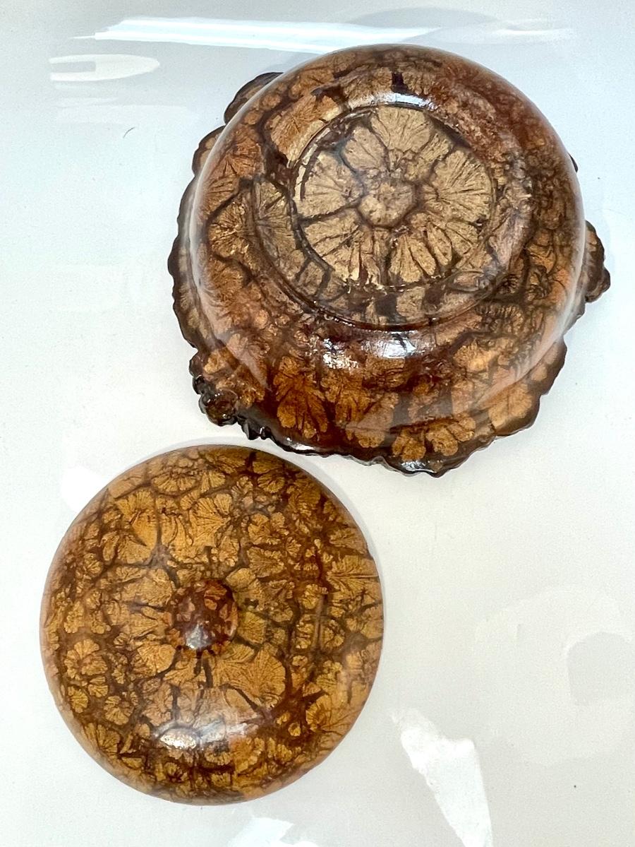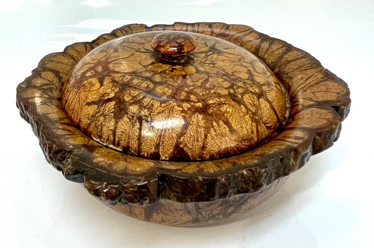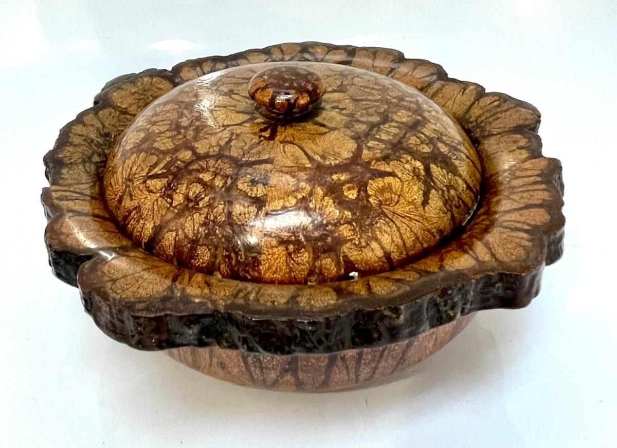 Vintage Genuine Hand Turned Chrysanthemum Wood Bowl Candy Dish with Lid