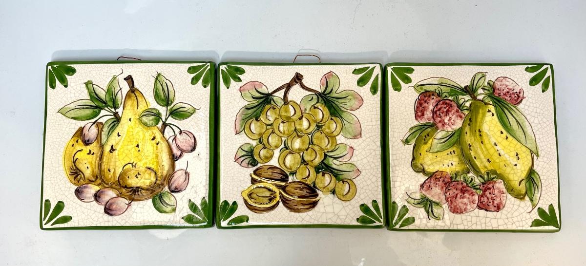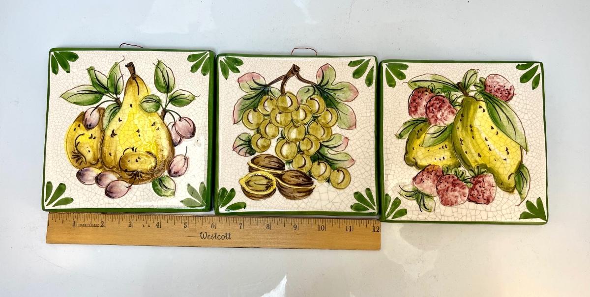 Set of 3 Cer Borgi Italian Ceramic Wall Hanging Tile Art. Display nicely despite the crazing from age.