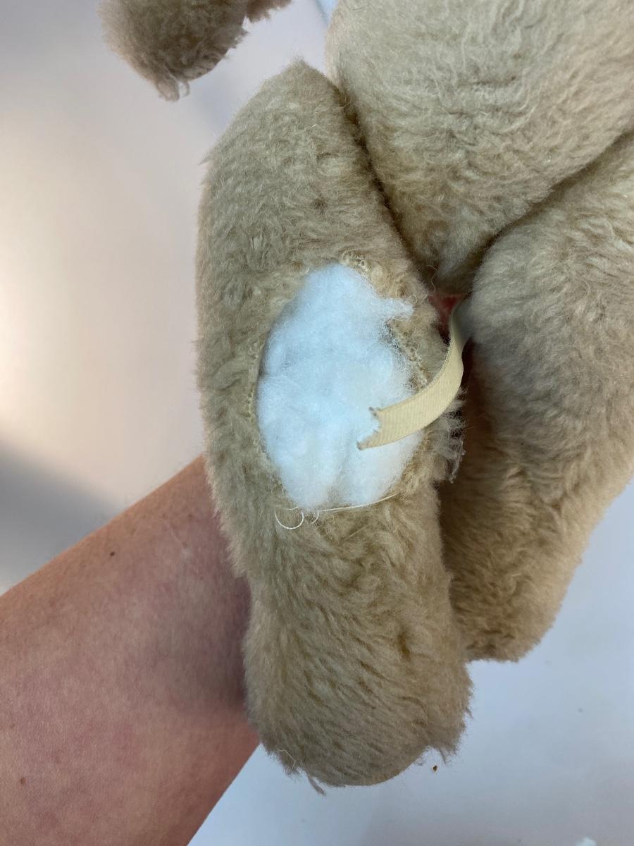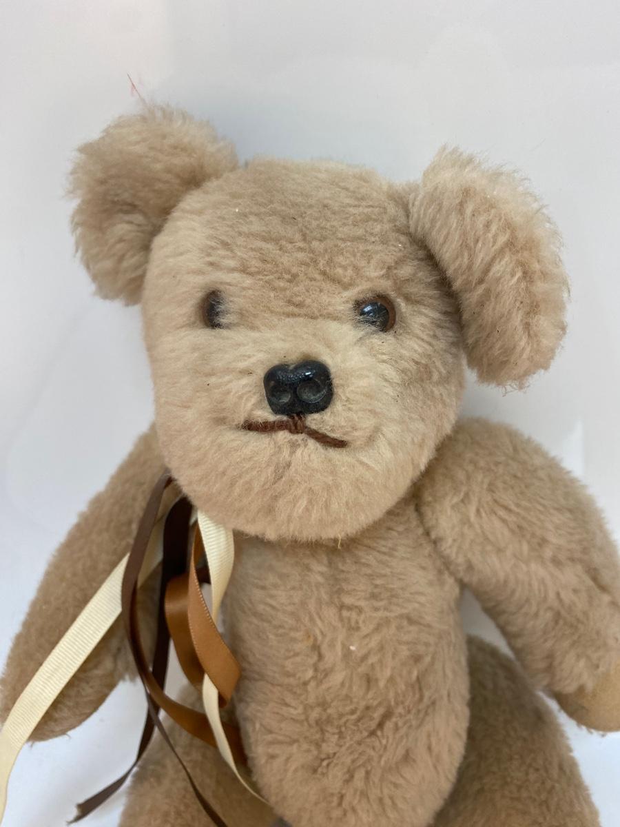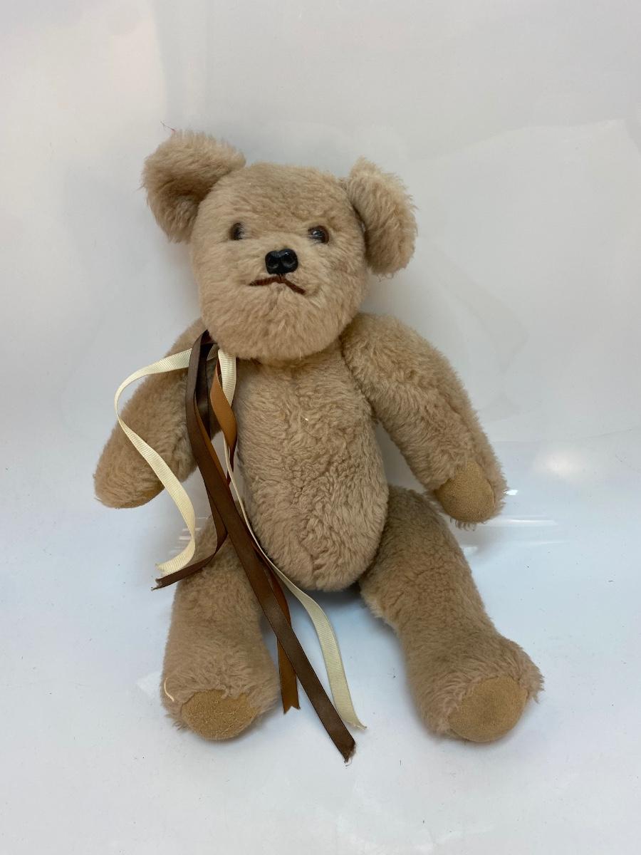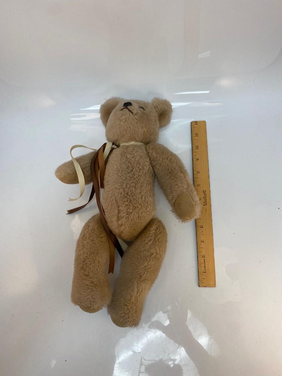 Vintage Jointed Teddy Bear Plush Animal Doll in Need of TLC. In loved condition, there is a hole in the back of one leg that needs to be repaired.