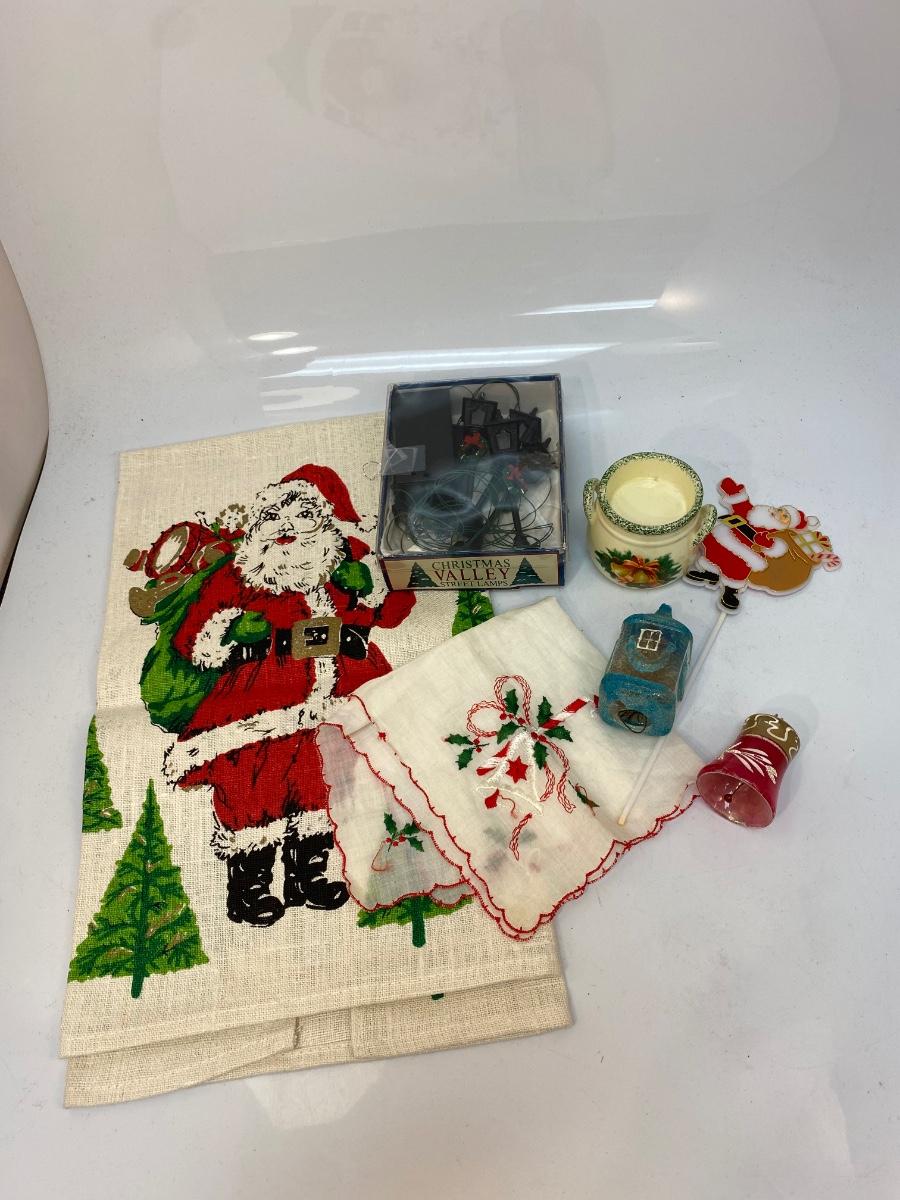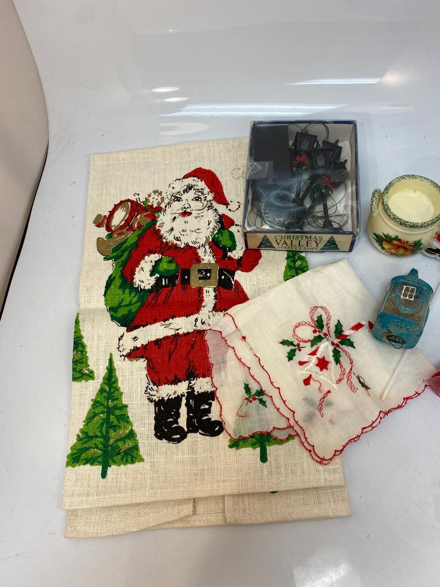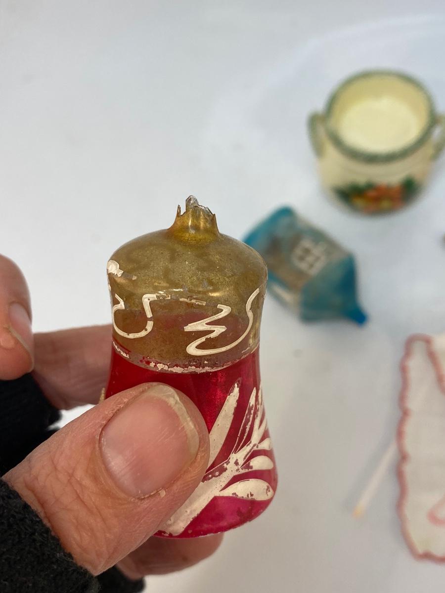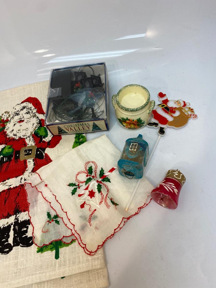 Christmas Holiday Decor Trinket Lot. Includes items photo'd. Ornaments need new tops put on.