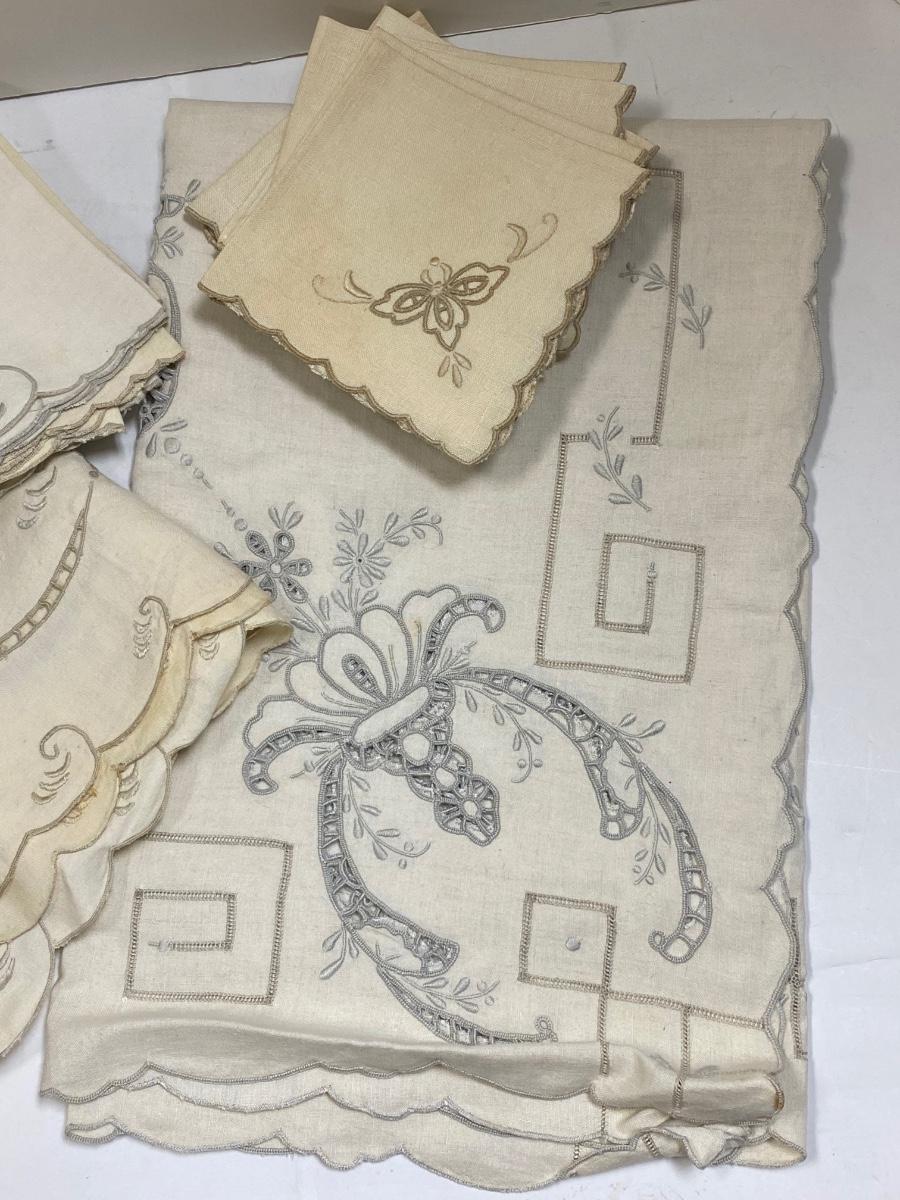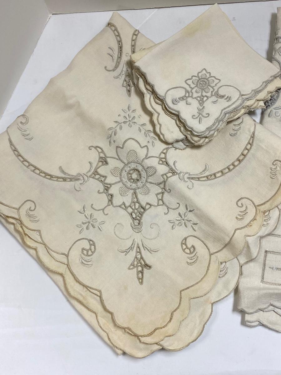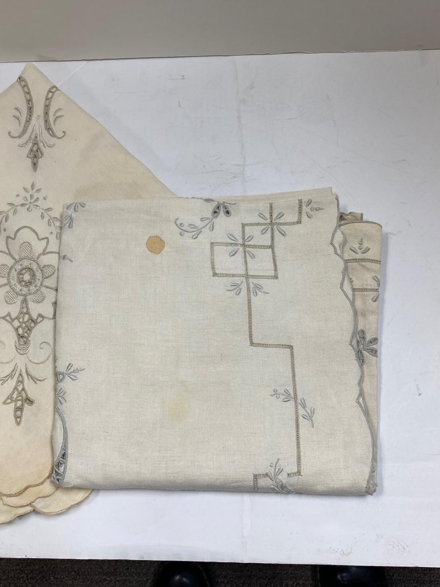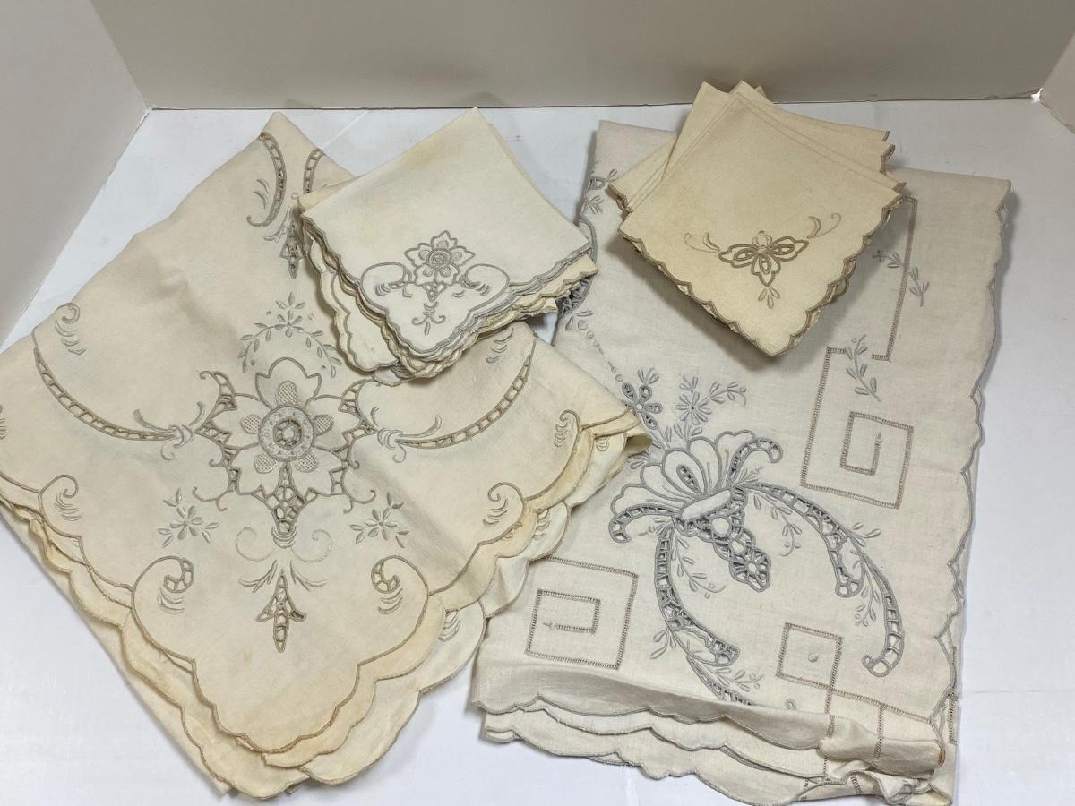 Pair of Small Antique Vintage Tablecloths and Linen Napkins