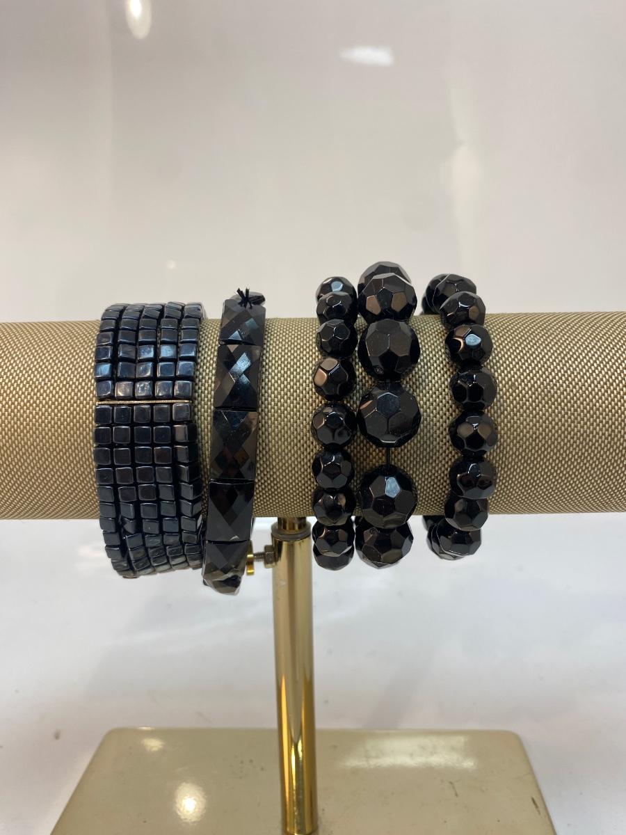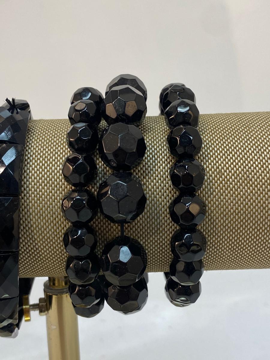 Lot of 5 Black Prismed Bead Stretchy Bracelets