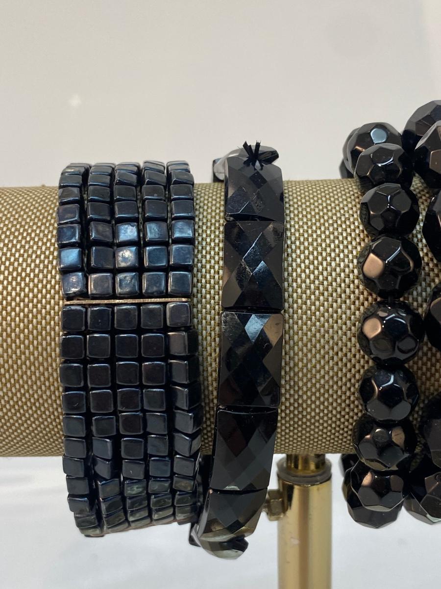 Lot of 5 Black Prismed Bead Stretchy Bracelets. Good condition.