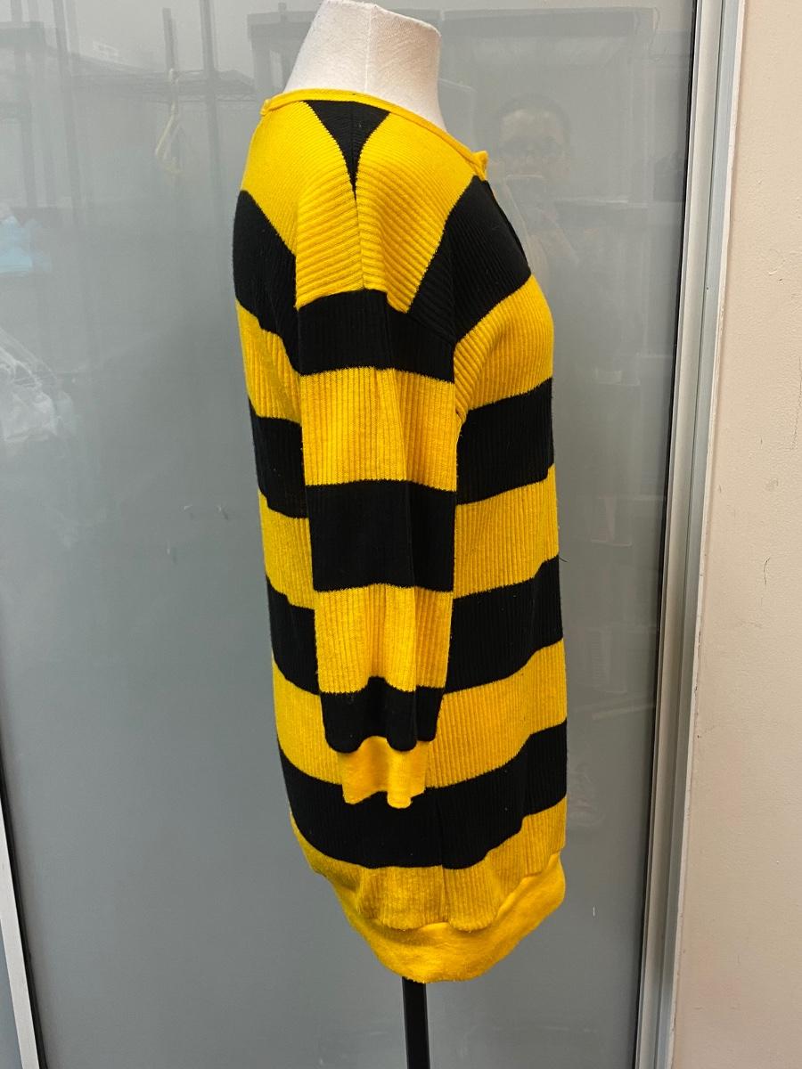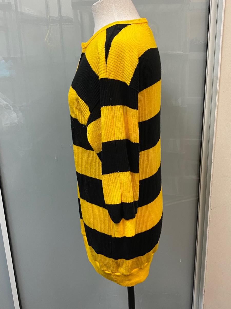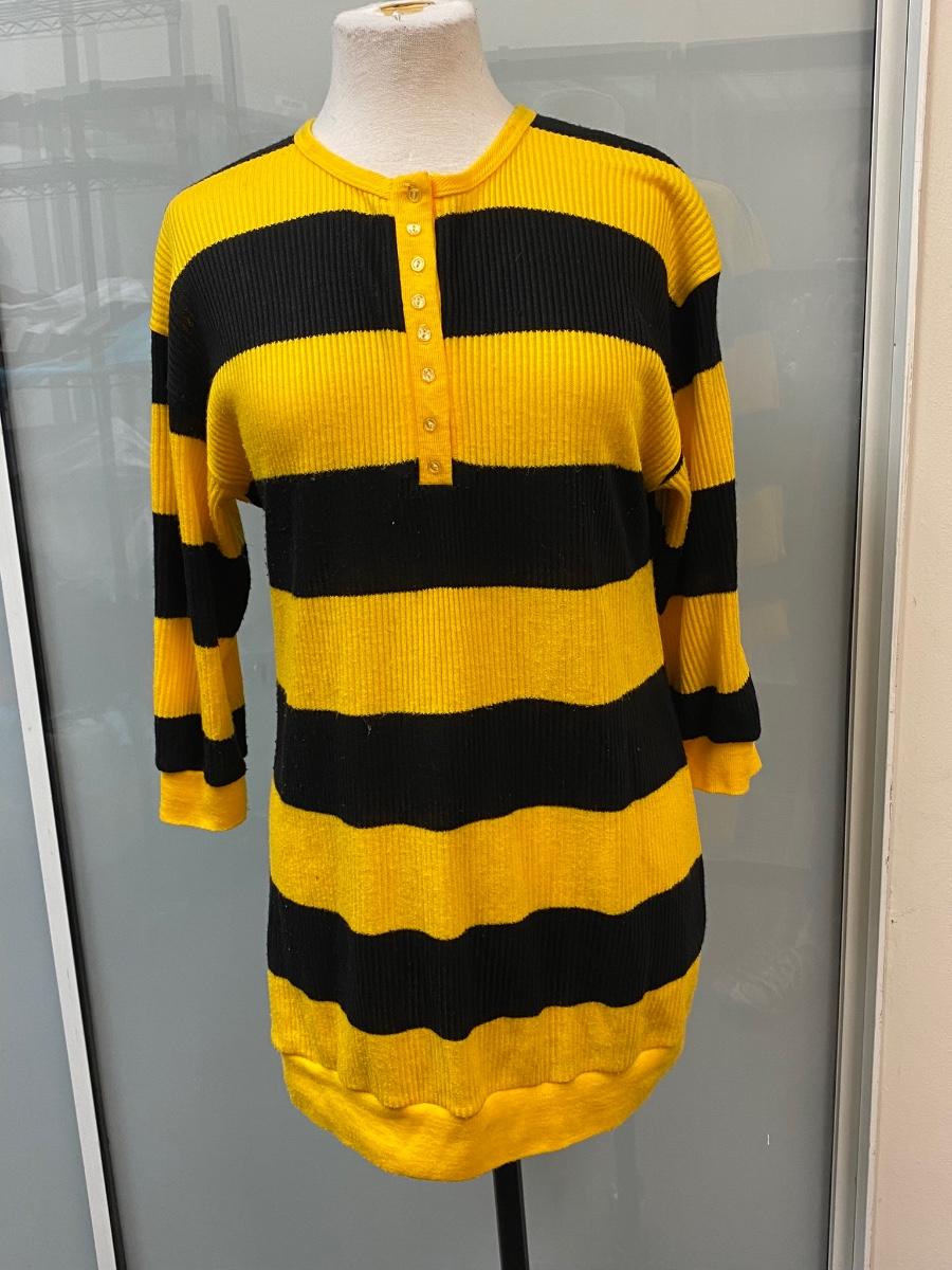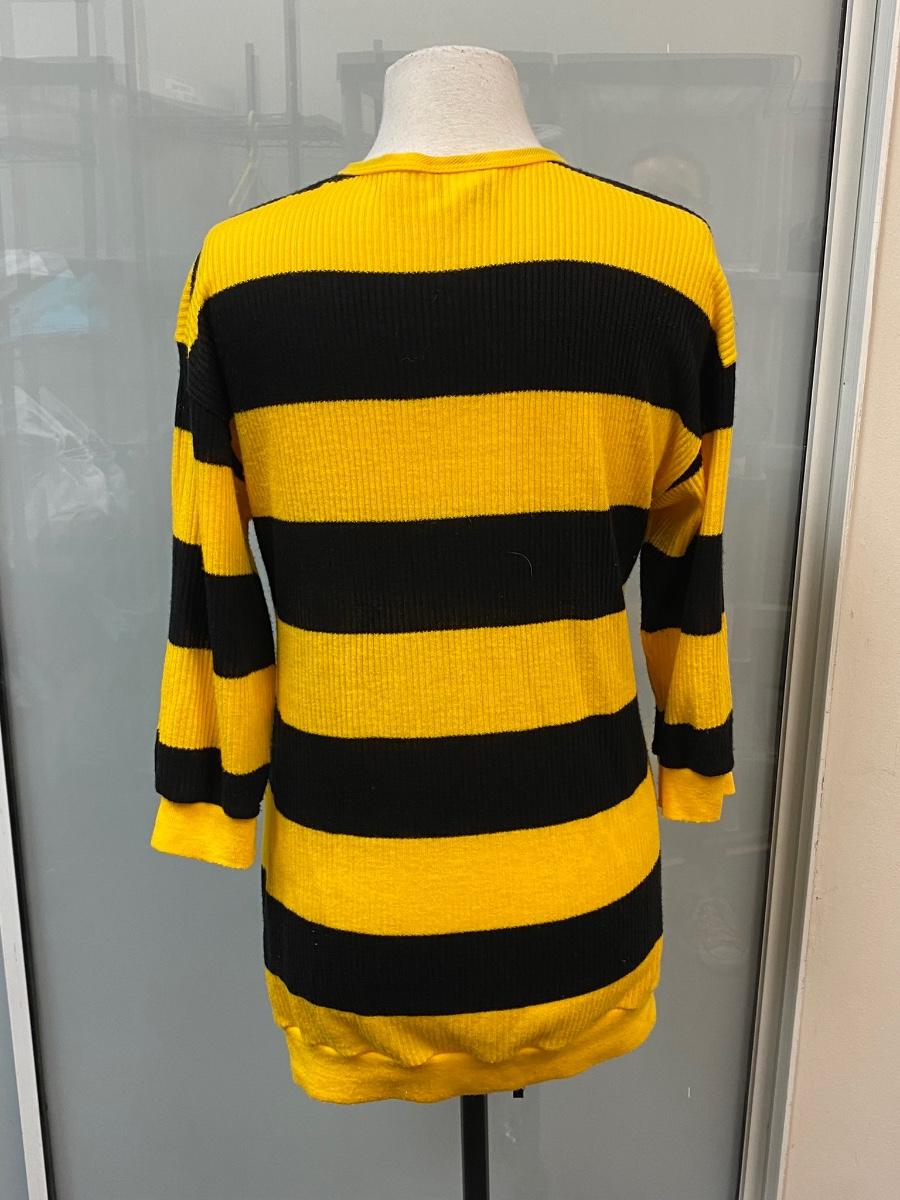 Vintage Retro Yellow & Black Wide Stripe Miss Kalico California Sweater Henley Top Tunic Blouse