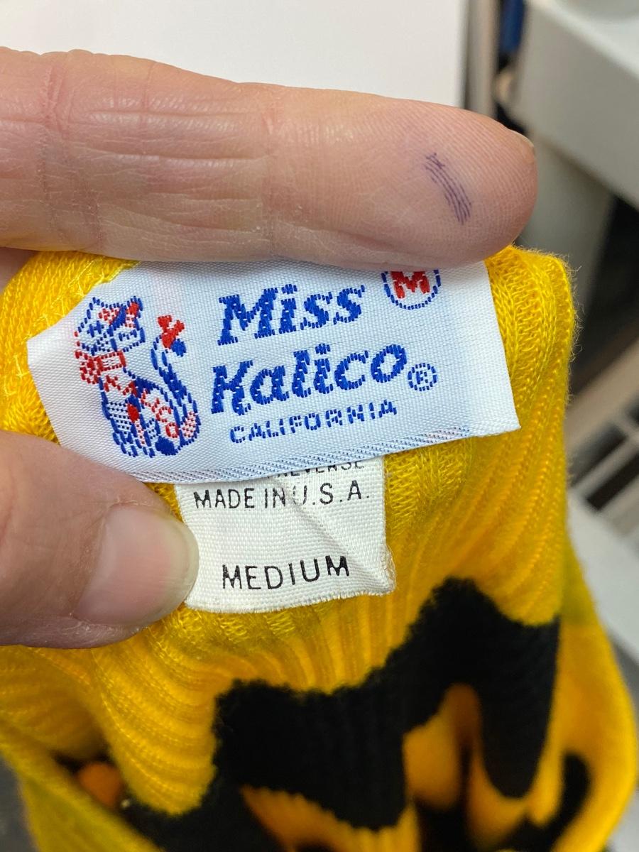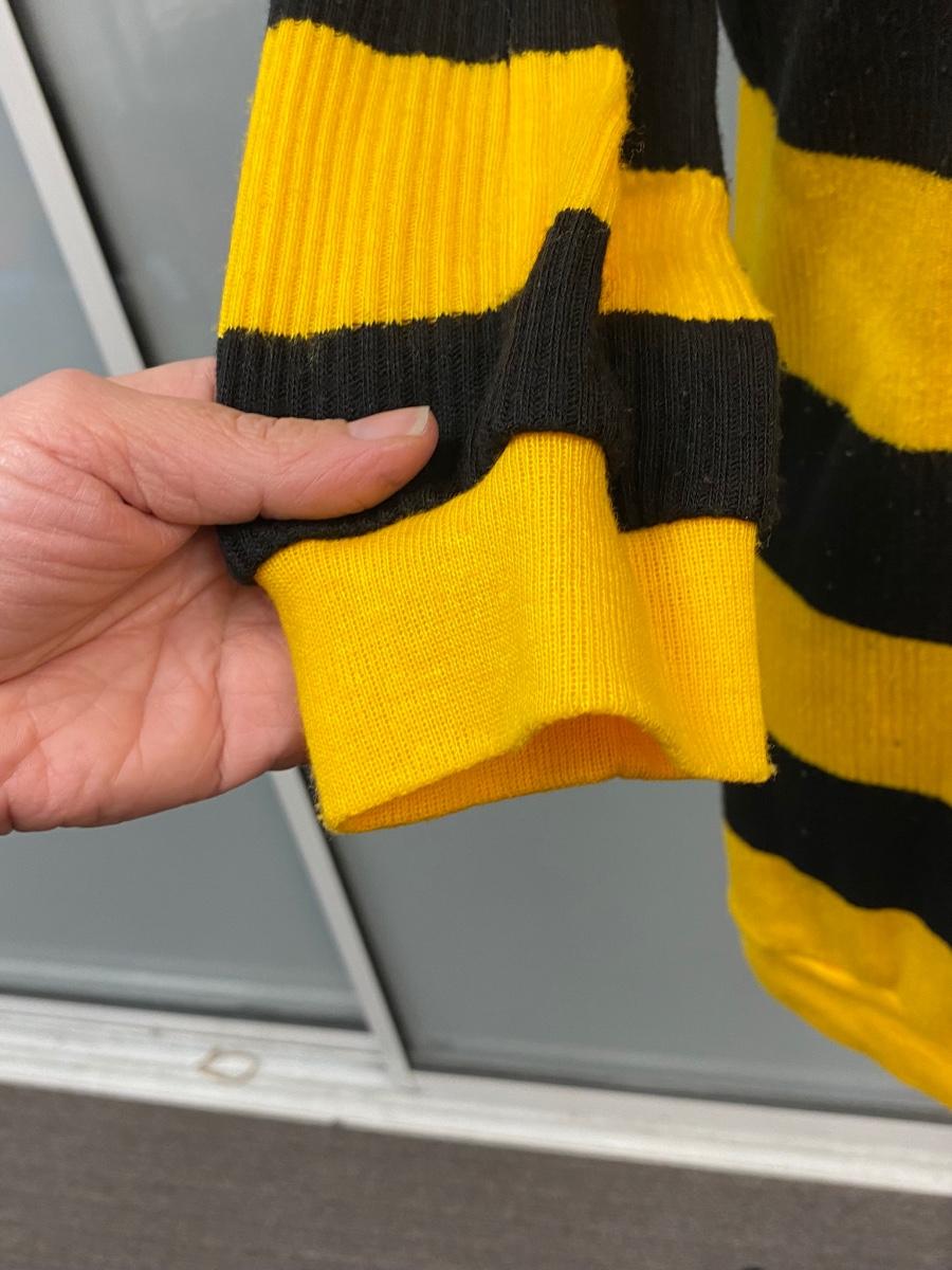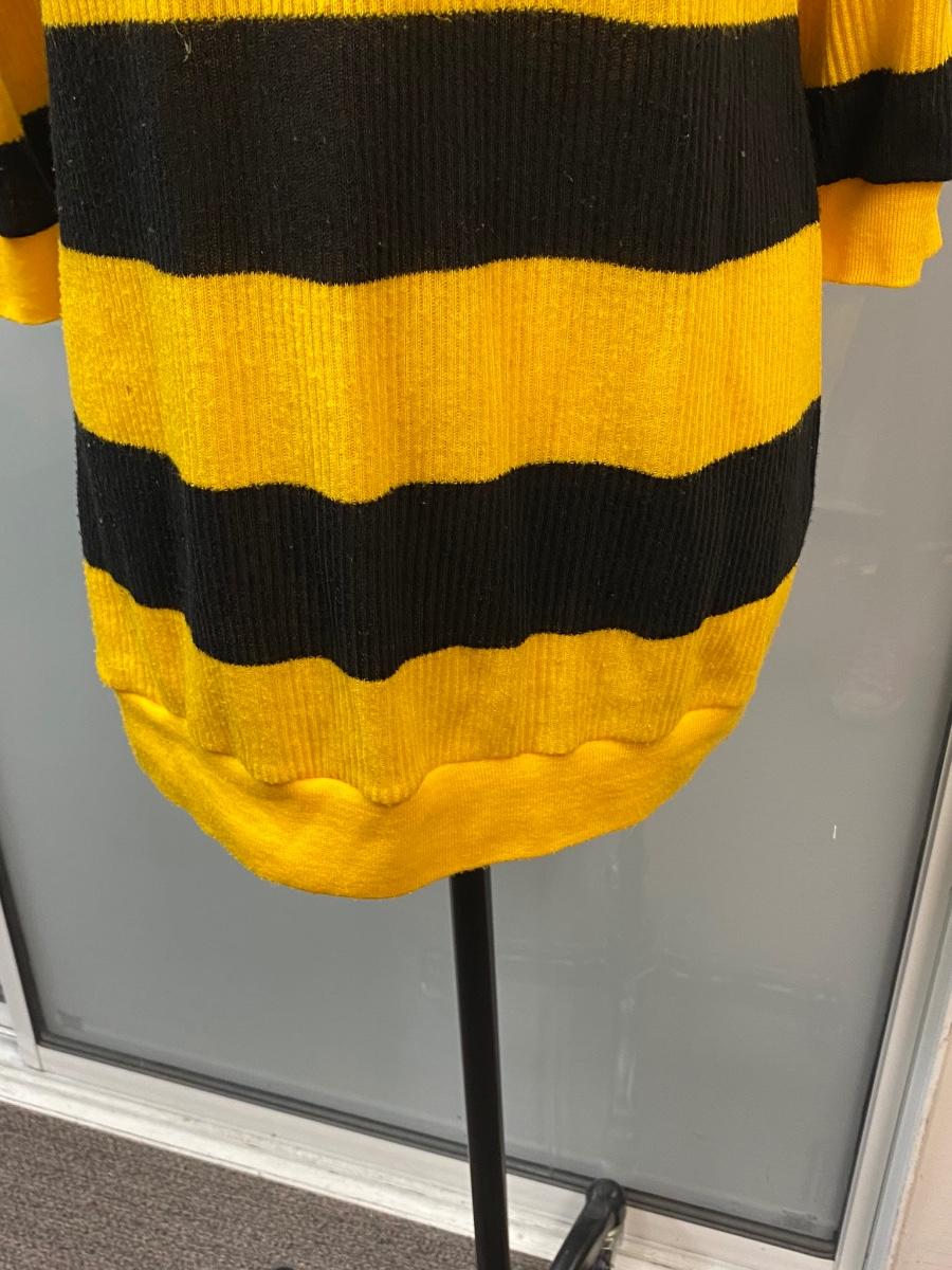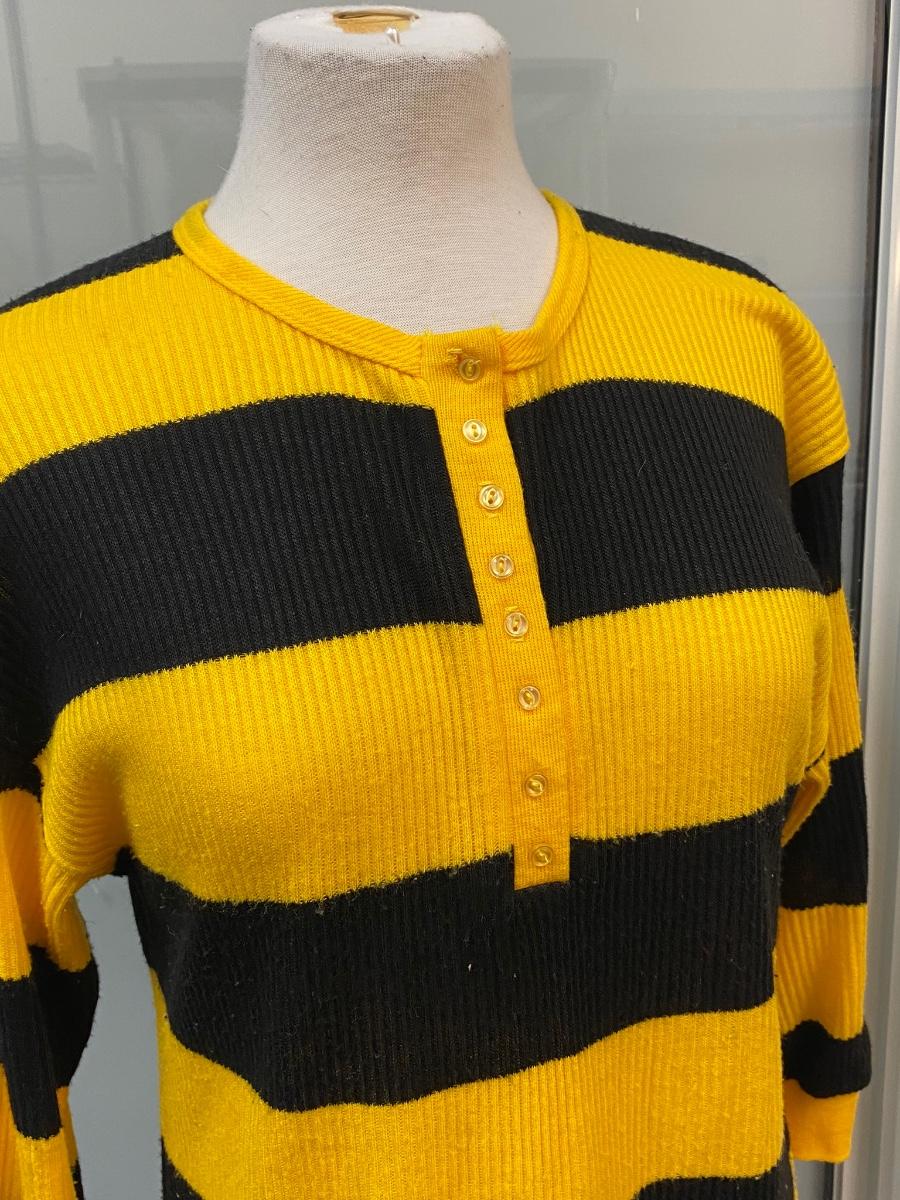 Vintage Retro Yellow & Black Wide Stripe Miss Kalico California Sweater Henley Top Tunic Blouse. In good worn condition. Size medium.