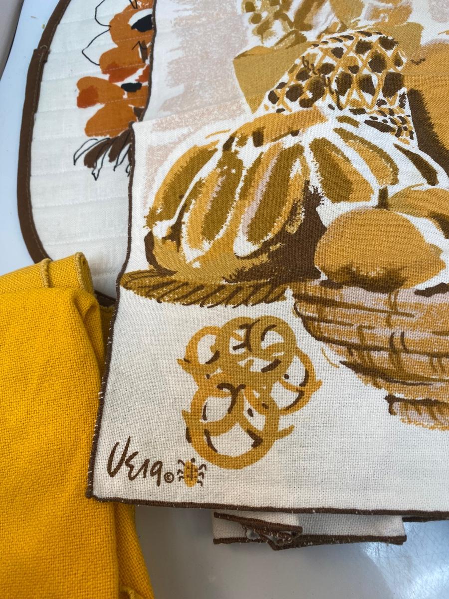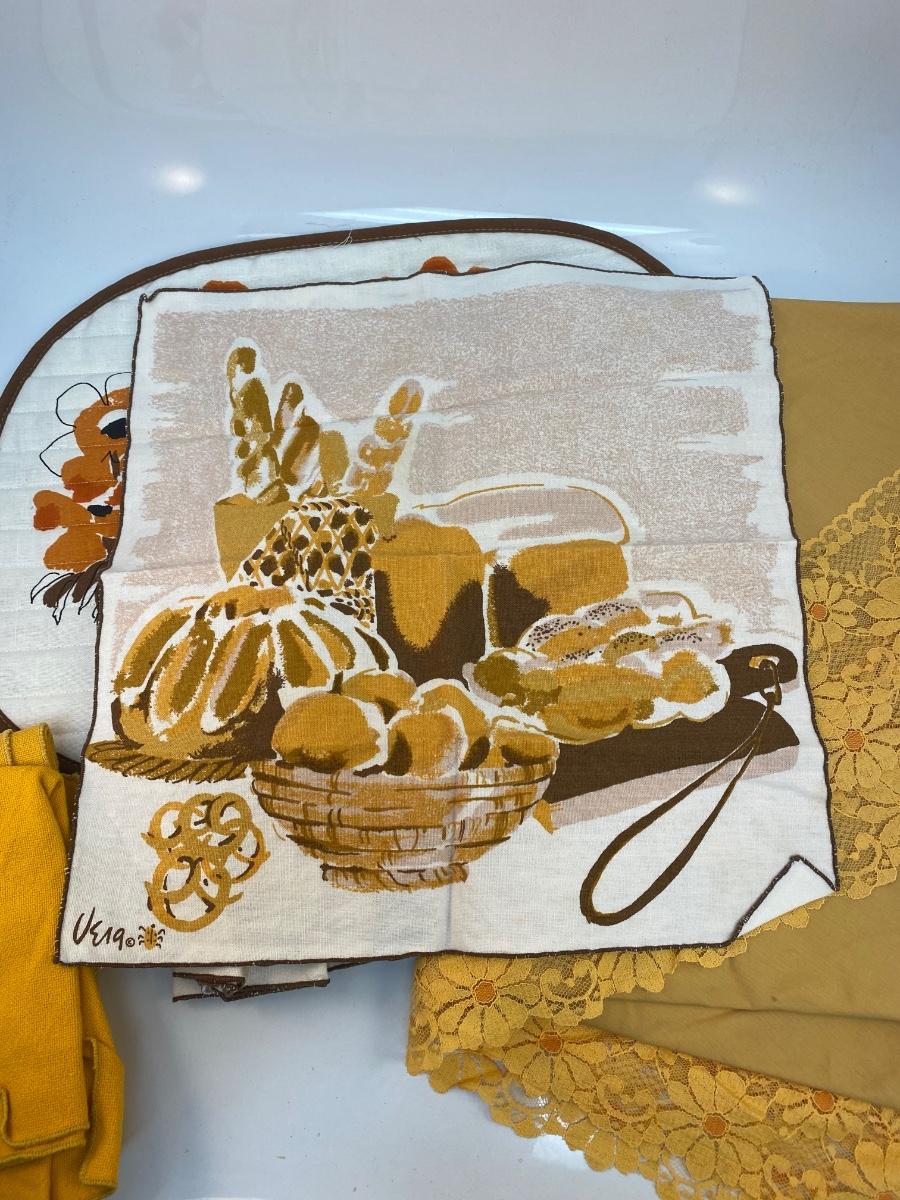 Mixed Lot of Vintage Retro Yellow Orange Brown Table Linens Napkins Tablecloth