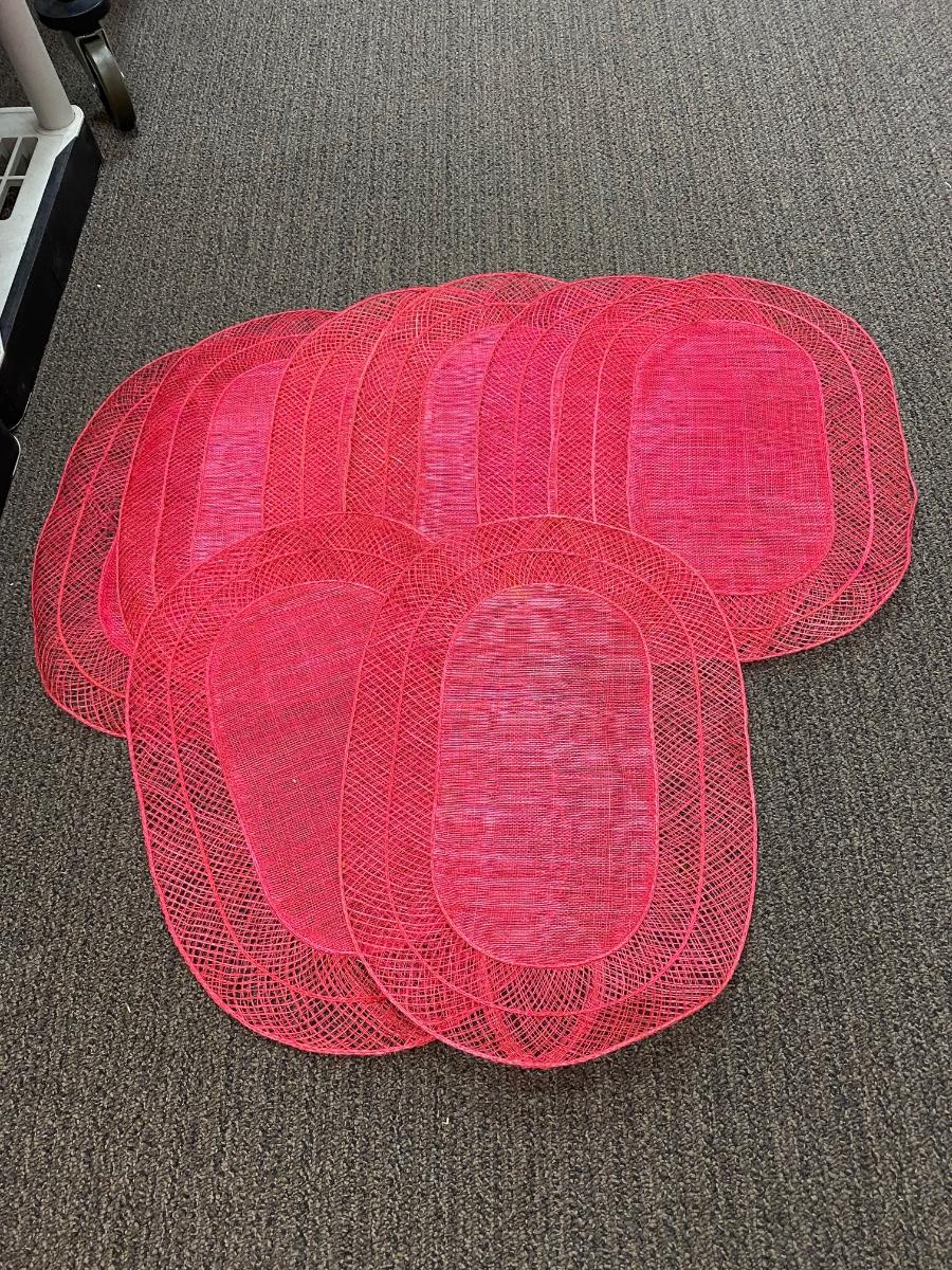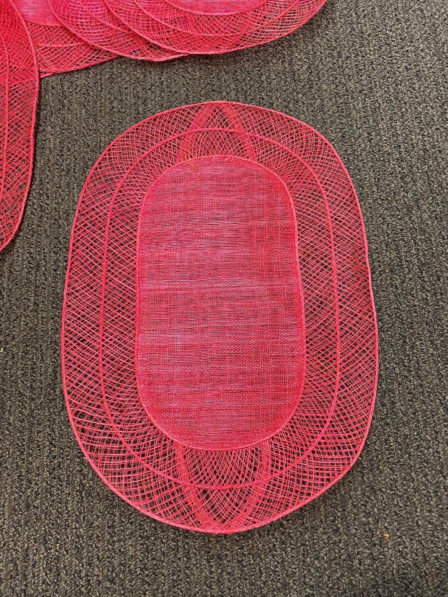 Set of 8 Vintage Red Hemp Fiber Woven Oval Placemats. In good condition. About 18" size.