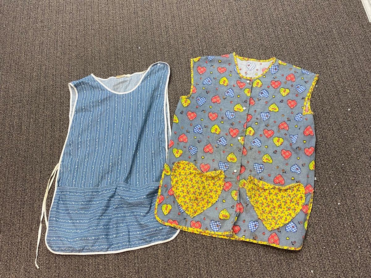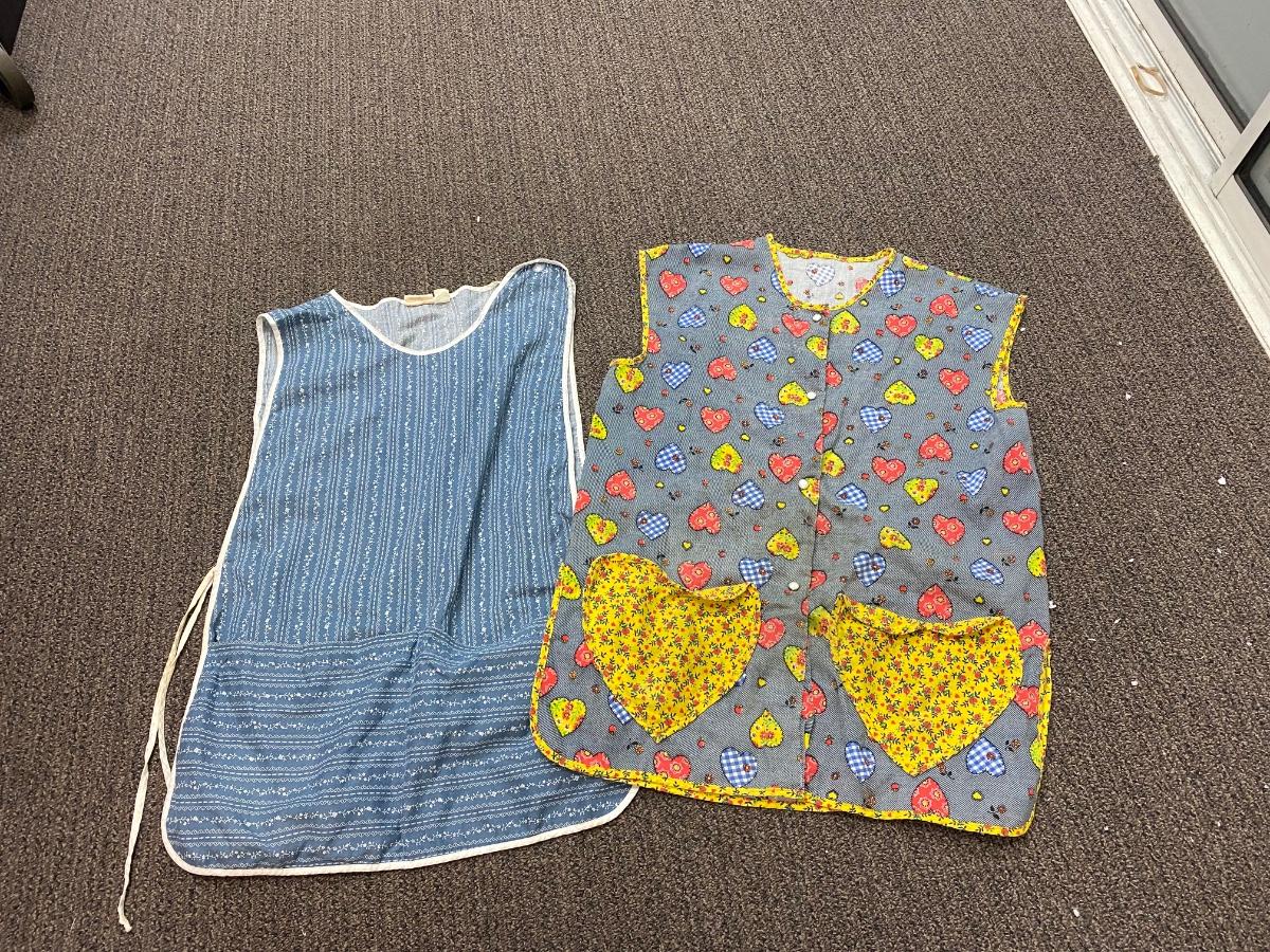Marjon of California Tie Apron & Colorful Plaid Heart Apron Shirt