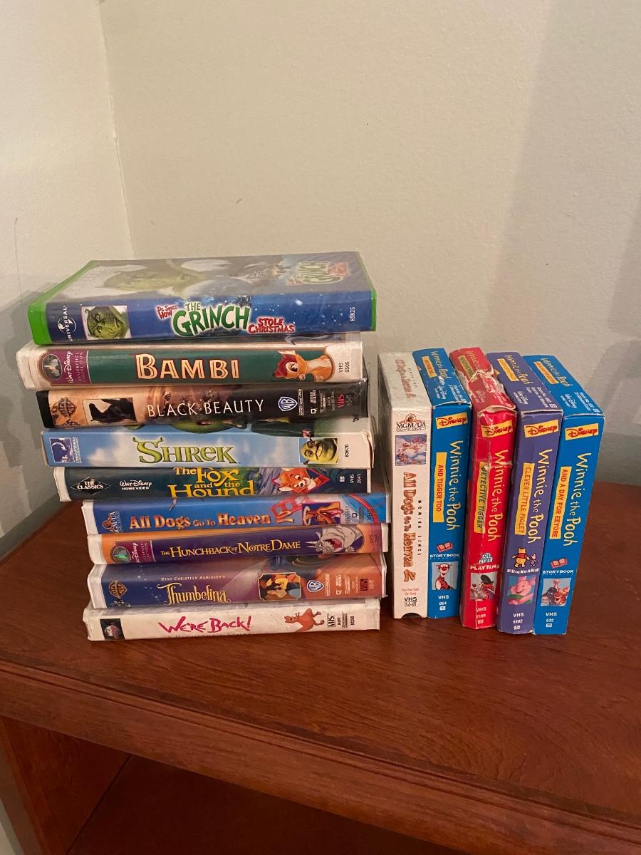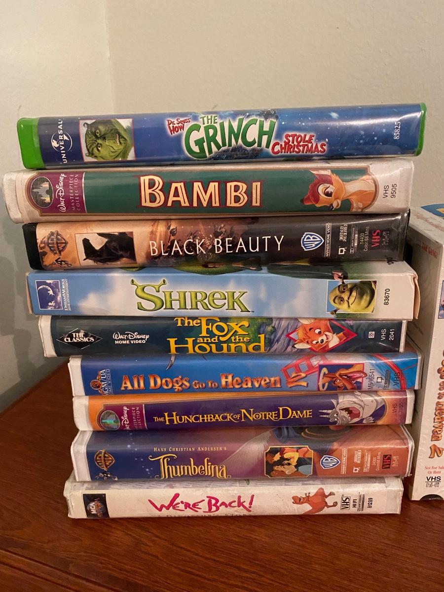 Children's VHS Movie Lot Disney Winnie the Pooh Grinch Shrek. Unchecked.