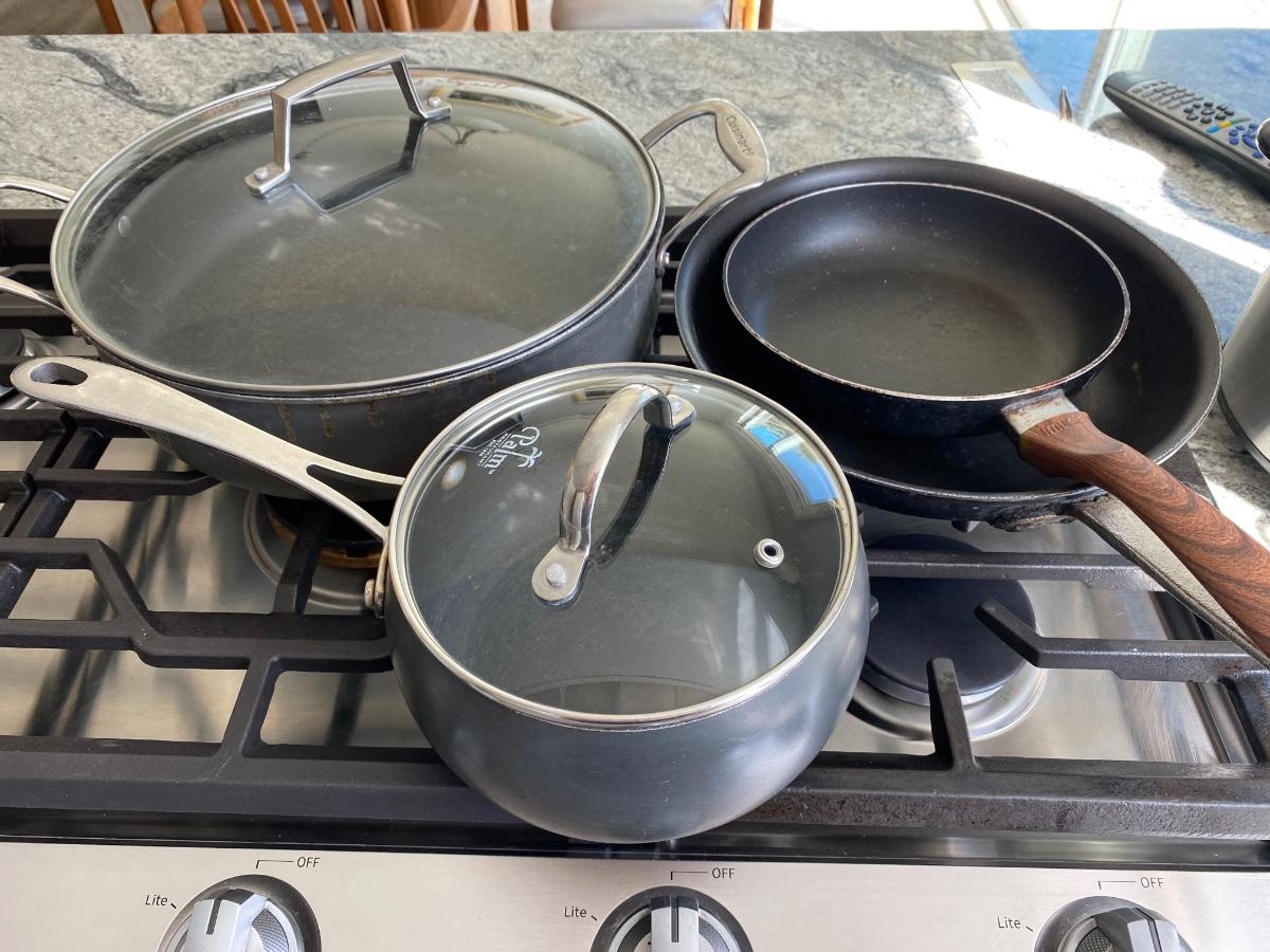 Mixed Lot of Cookware Coated Pots and Pans. In fair used condition.