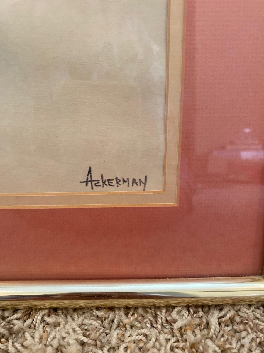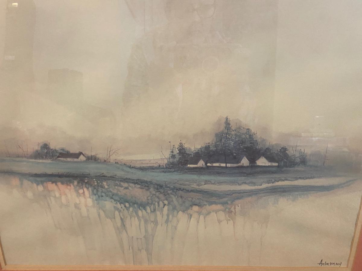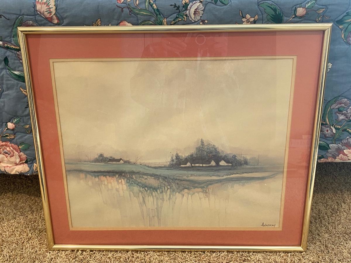 Big Rural Sky Frank Ackerman Framed and Signed Watercolor Painting. In good vintage condition. About 21"x25" framed size. Watercolor not print.