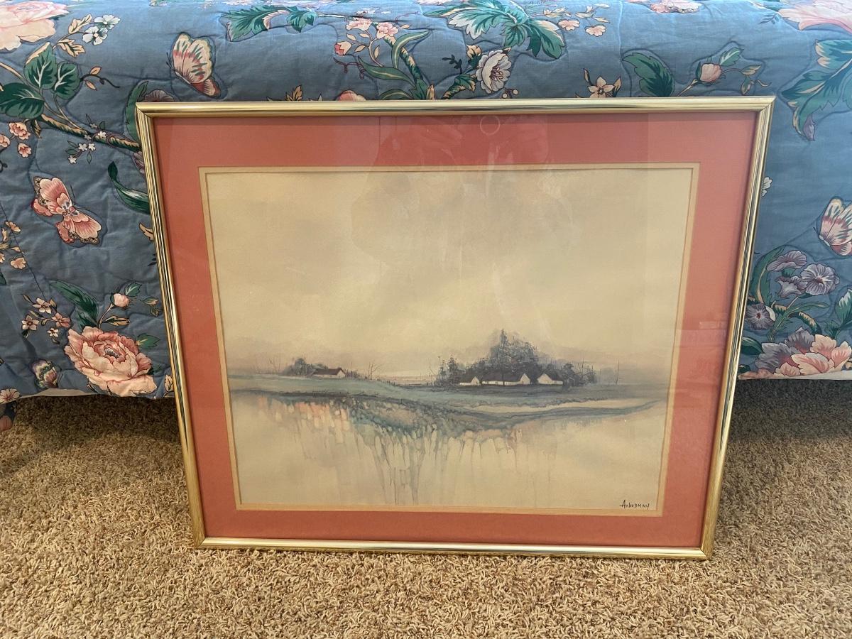 Big Rural Sky Frank Ackerman Framed and Signed Watercolor Painting