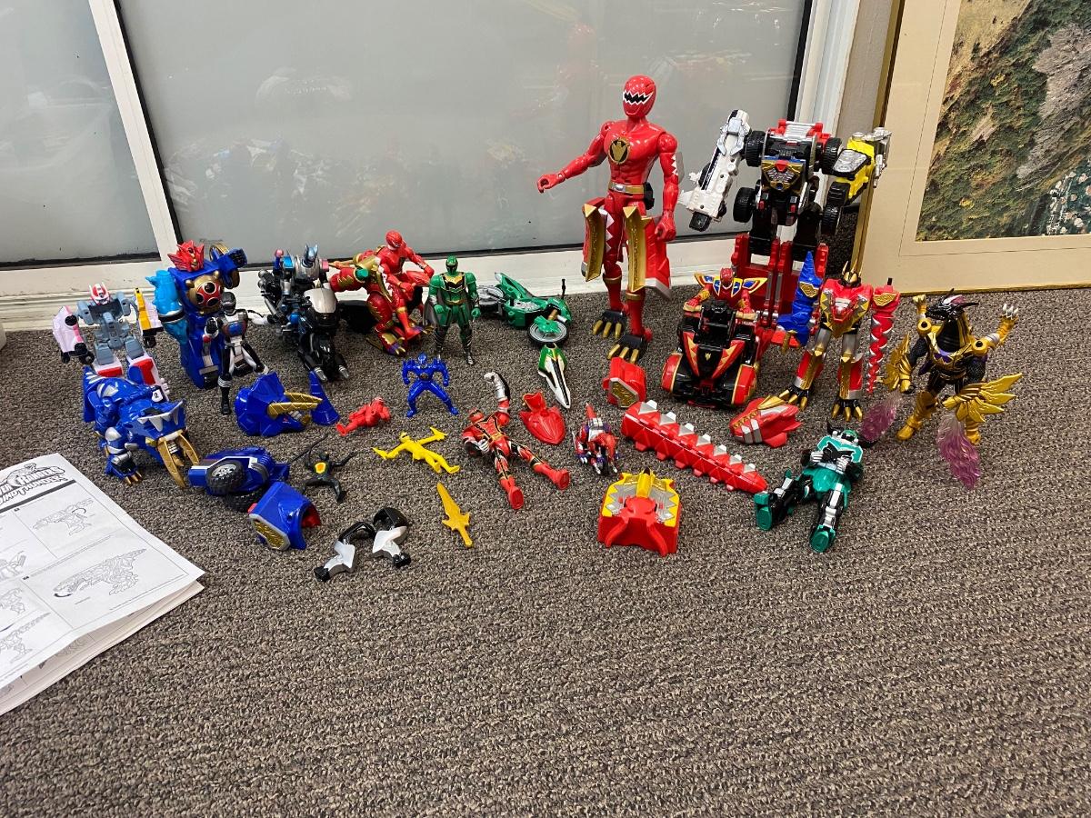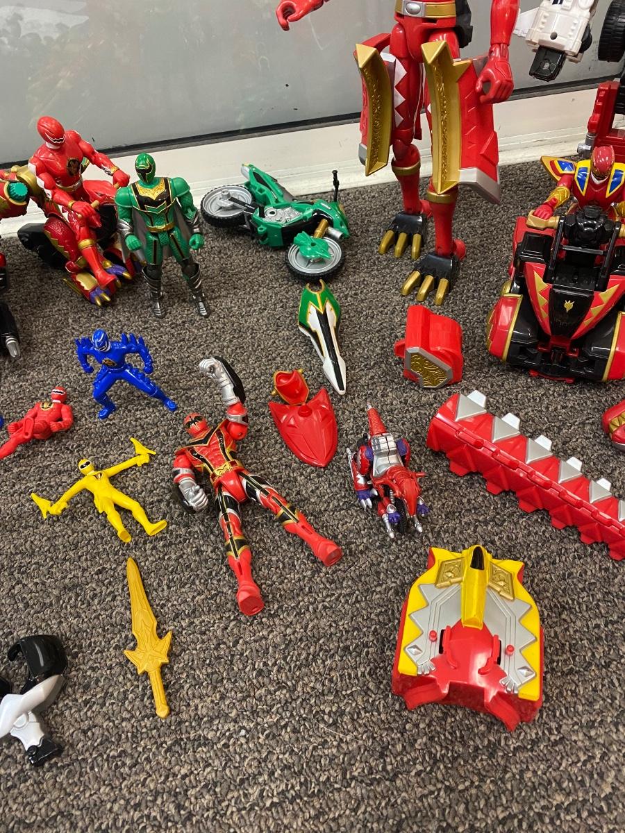 Huge Mixed MMPR Power Rangers Action Figure Lot. Different sizes of figures may be from different Power Rangers series. Mix of figures, accessories and Megazord parts.