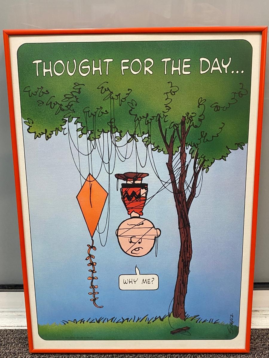 Vintage Retro Charlie Brown Thought for the Day Framed Comic Art Peanuts Gang. In good condition. About 14x20.