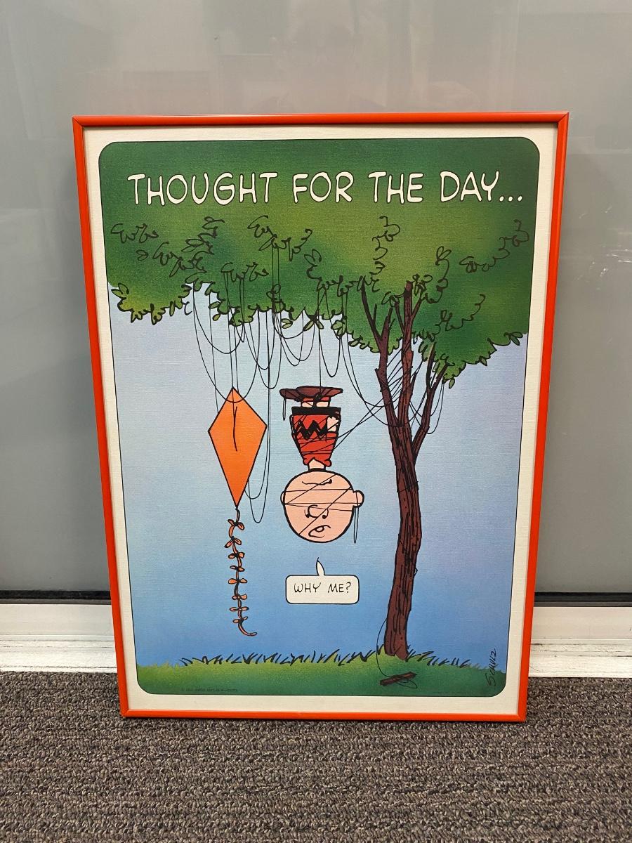 Vintage Retro Charlie Brown Thought for the Day Framed Comic Art Peanuts Gang