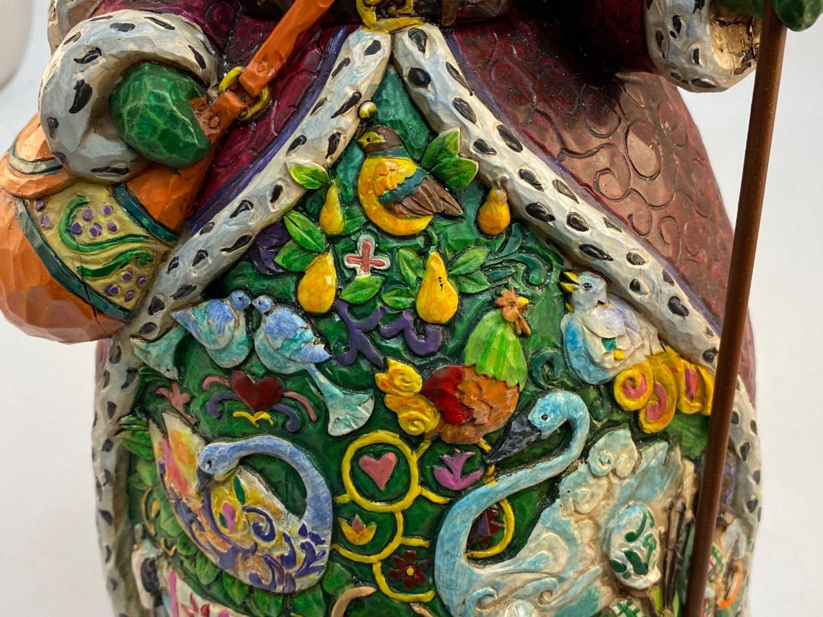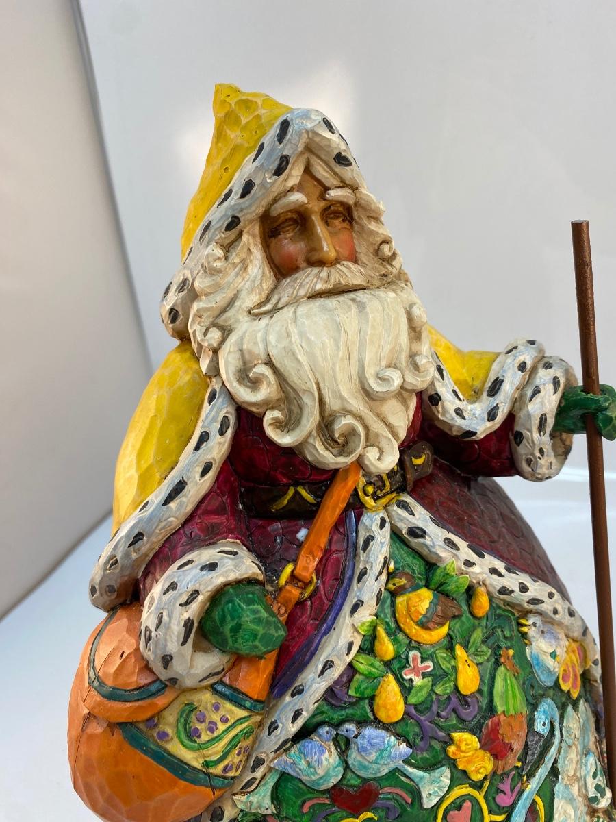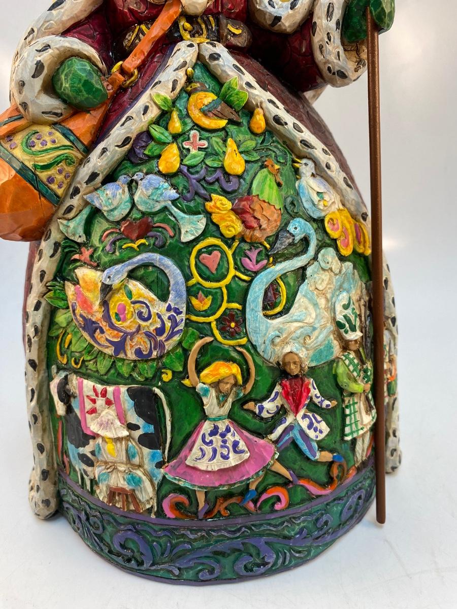 Jim Shore Folk Art Heartwood Creek My True Love Gave to Me 12 Days of Christmas Santa Claus Figurine. In good condition, except the end of his stick has been broken off. Displays nicely. Almost 12" tall.