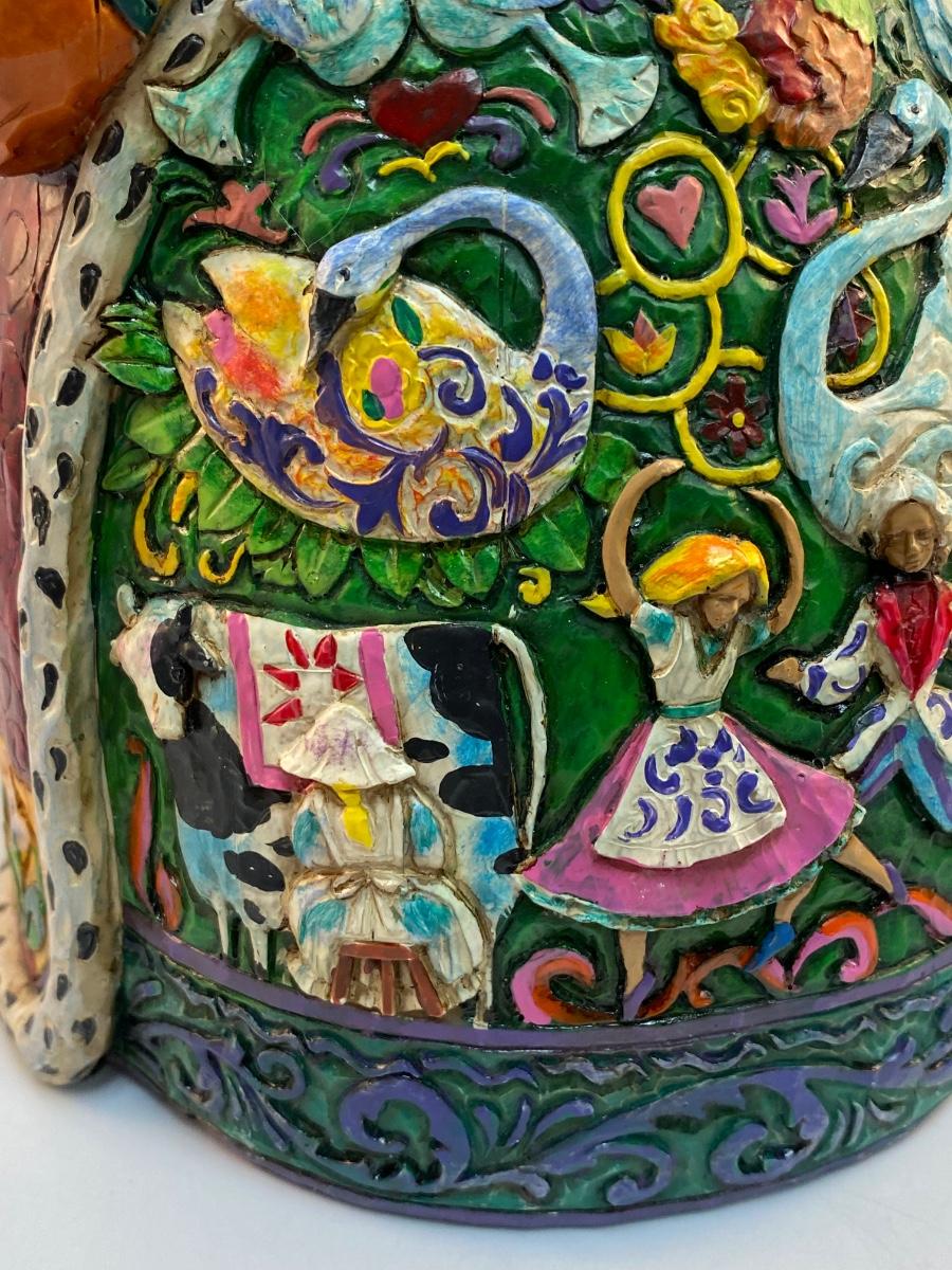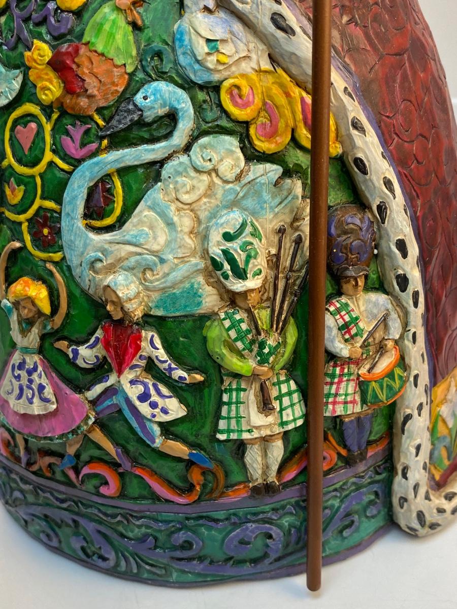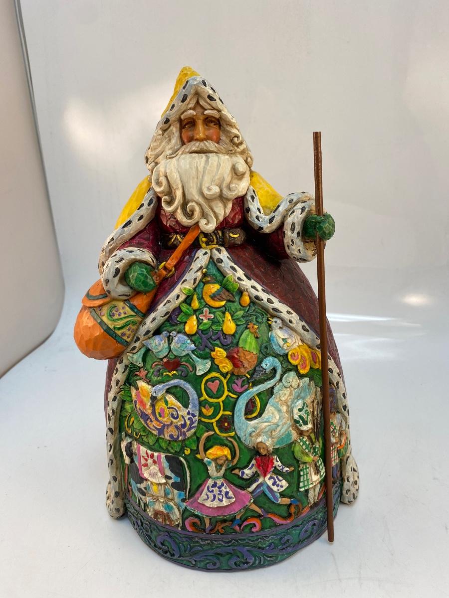 Jim Shore Folk Art Heartwood Creek My True Love Gave to Me 12 Days of Christmas Santa Claus Figurine. In good condition, except the end of his stick has been broken off. Displays nicely. Almost 12" tall.