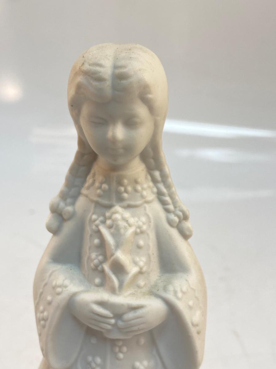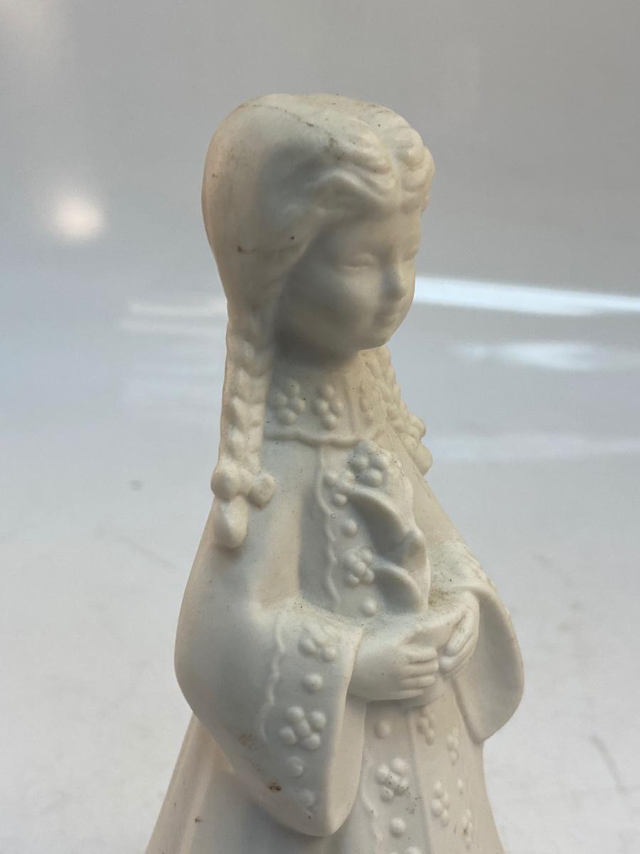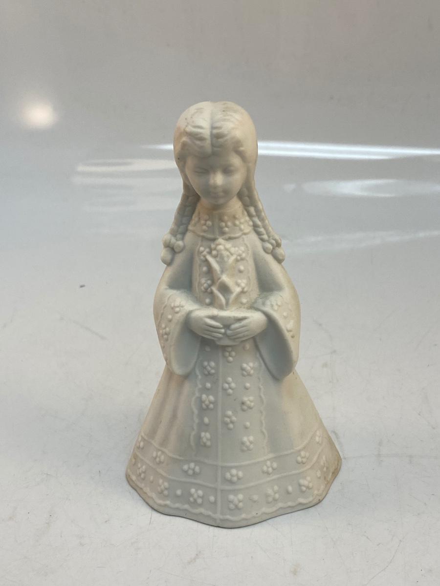 White Bisque Porcelain Choir Girl Bell Japan. in displayed condition. A little over 5" size.