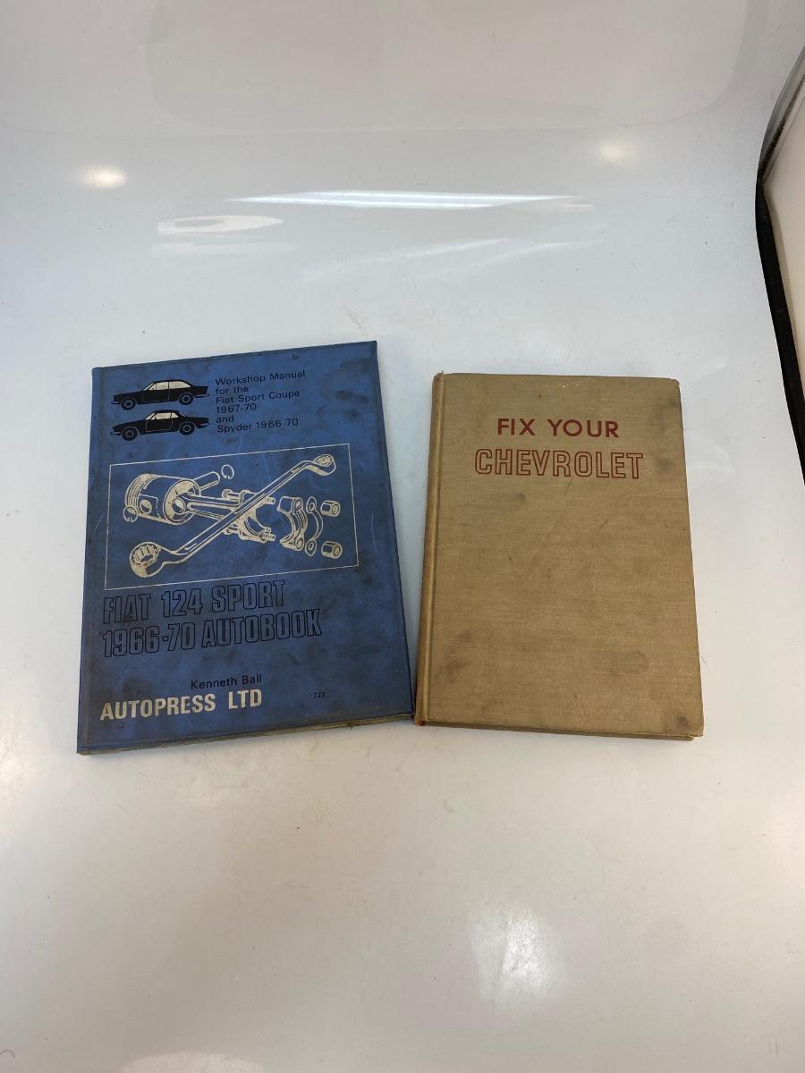 Pair of Vintage Automotive Repair Manual Guides Chevrolet Fiat. In good used condition. Smudge from mechanic fingers.