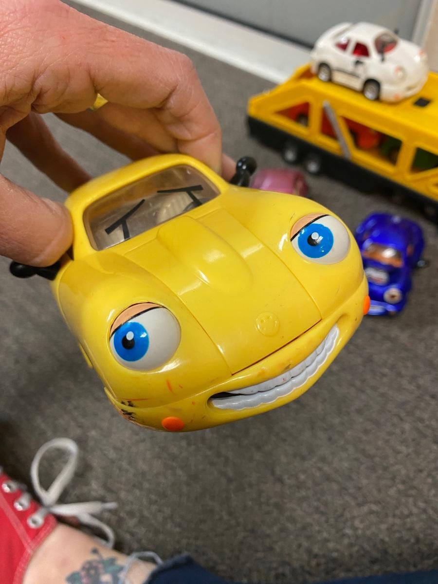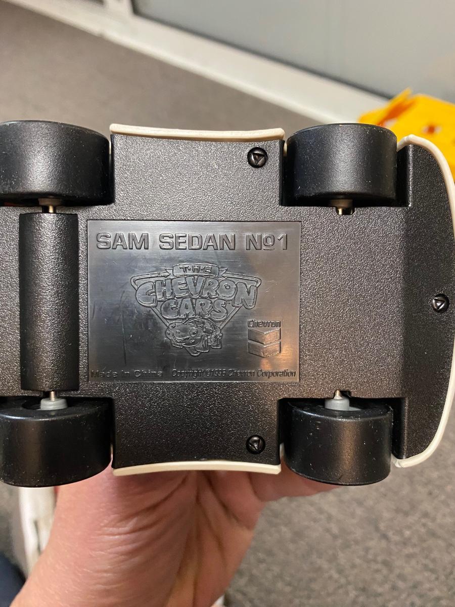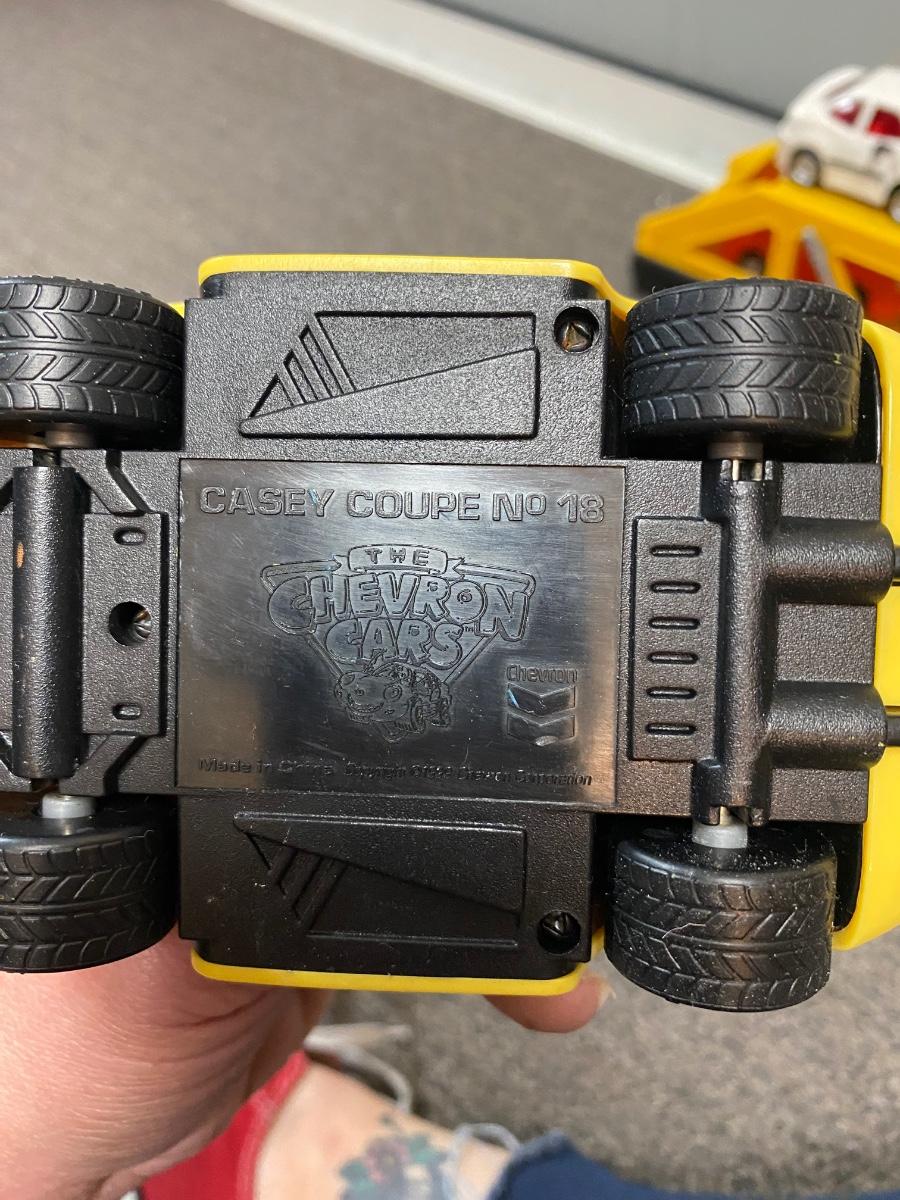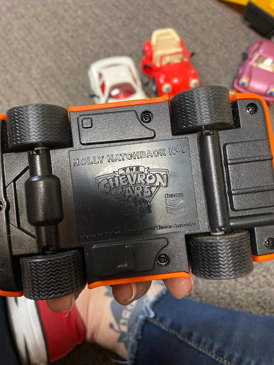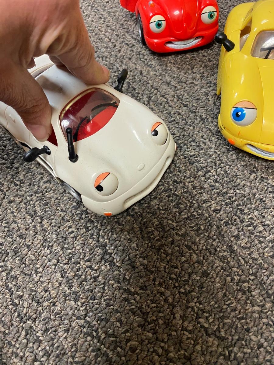 Chevron Cars Semi Truck Hauler & 7 Googly Eyed Cars. In good played with condition. Some of the cars have eyes that move when pushed.