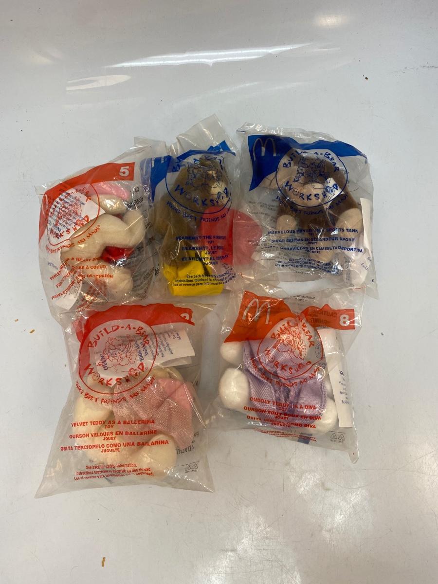 McDonalds Happy Meal Toy Build a Bear Plush in Packages. Lot of 5. Unopened.