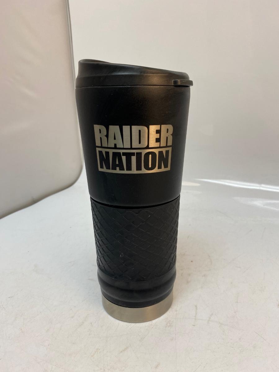Raider Nation NFL 24oz Insulated Travel Mug Cup Stainless Steel. Good previously used condition.