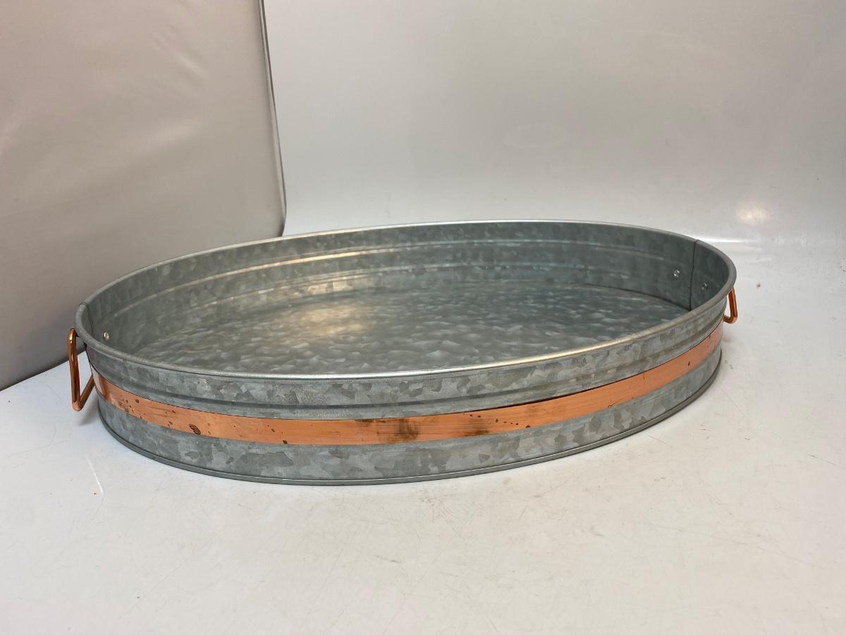 Galvanized Steel Oval Serving Tray Rose Gold Accent & Handles