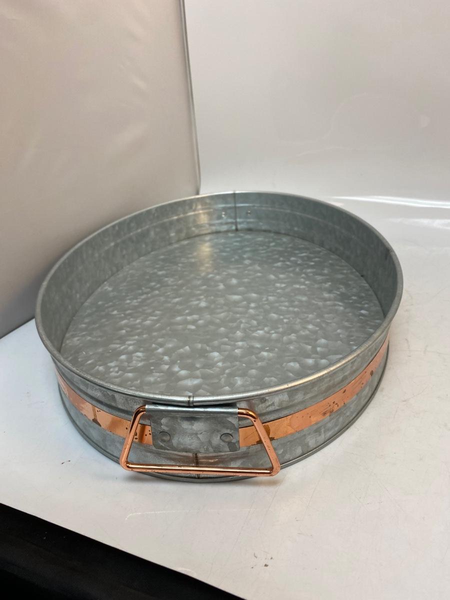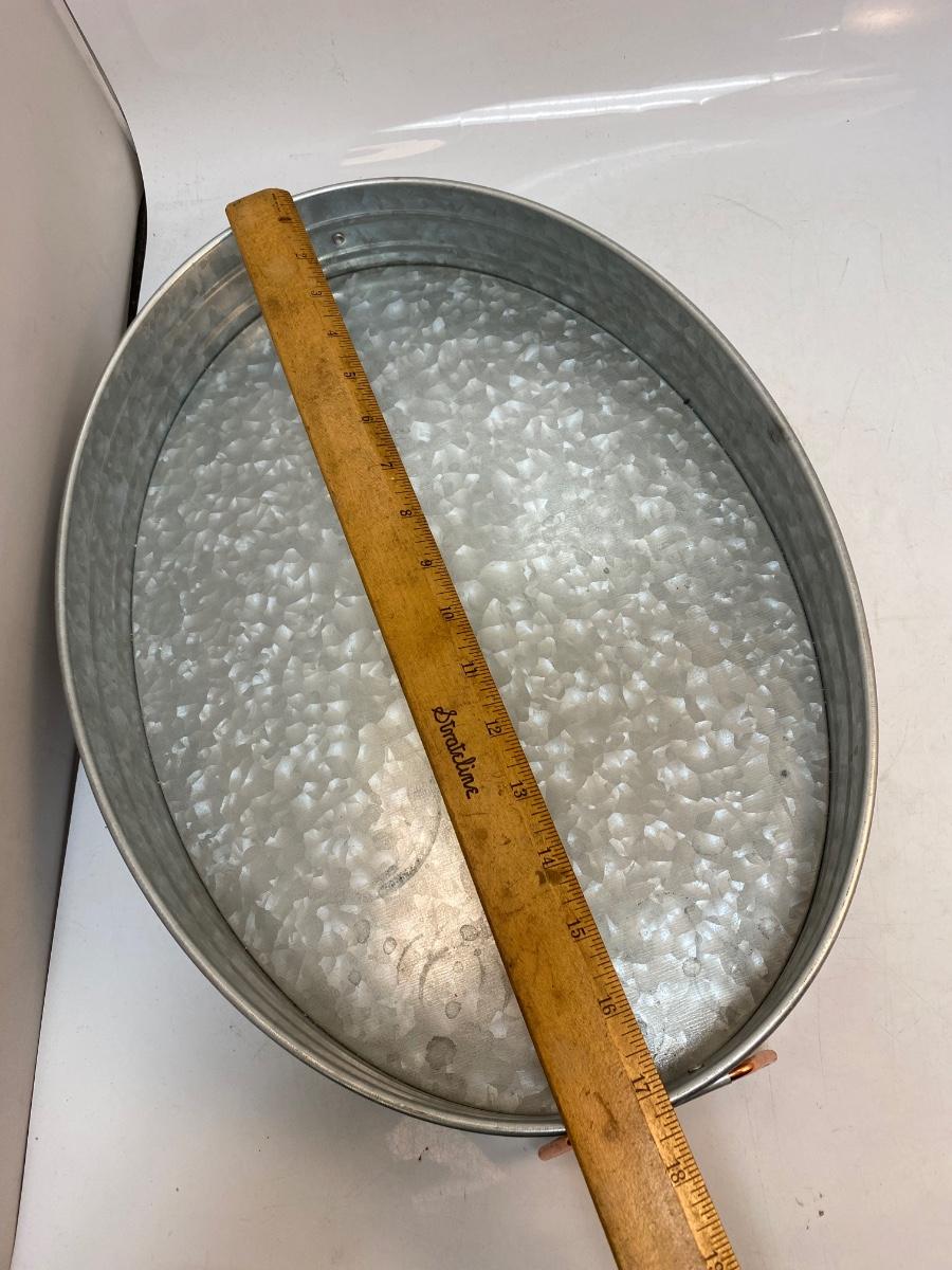 Galvanized Steel Oval Serving Tray Rose Gold Accent & Handles. Good condition.