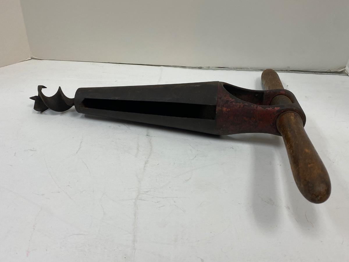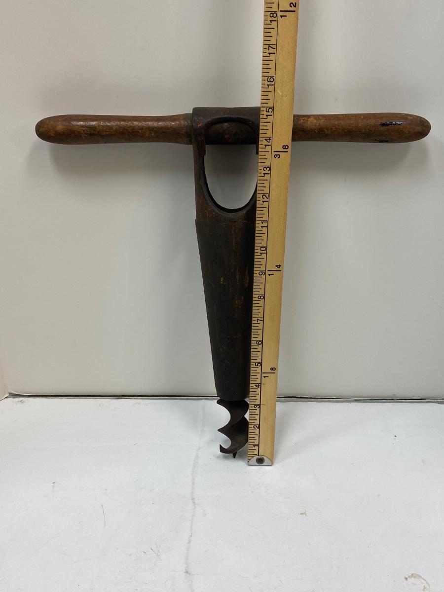 Antique Short Stubby Boring Auger Bit Wood Handled 15"