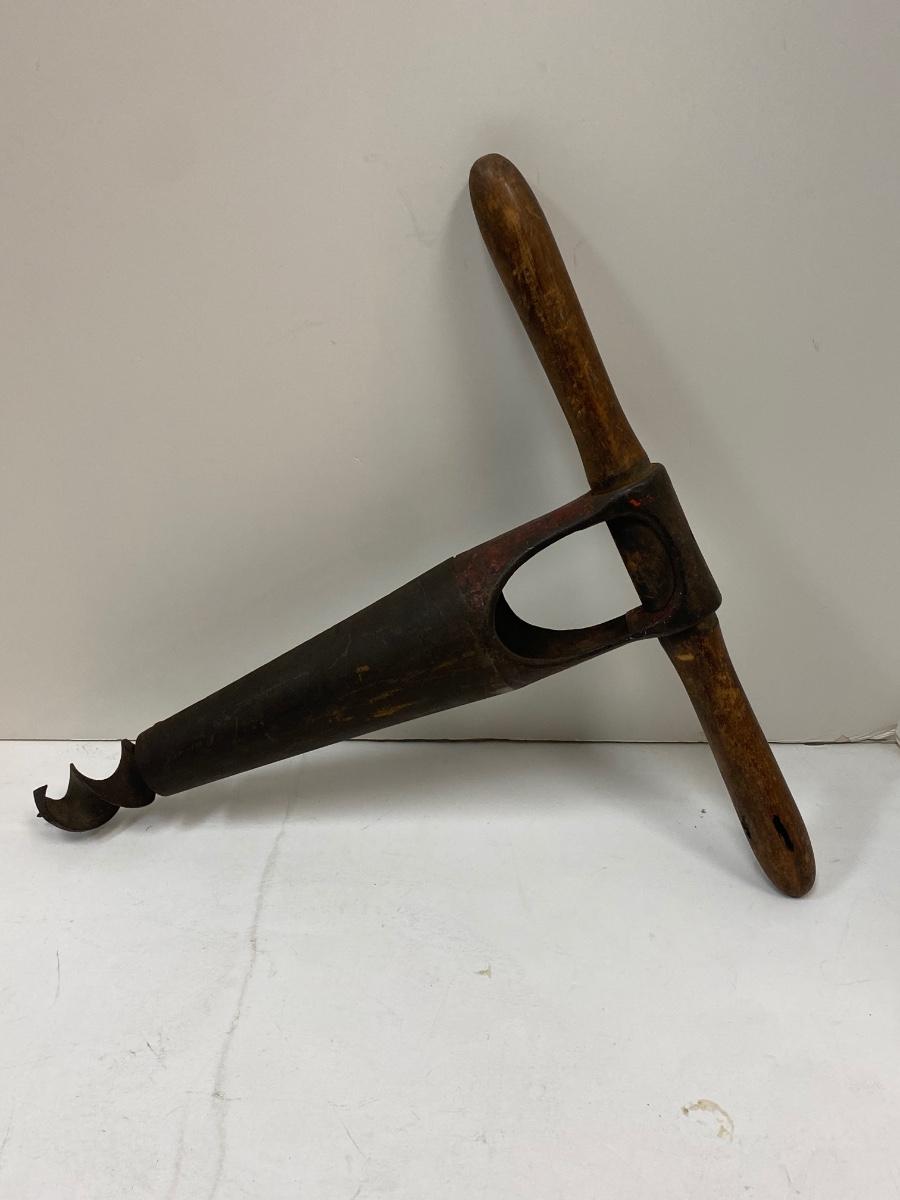 Antique Short Stubby Boring Auger Bit Wood Handled 15". In good condition. Looks to be useable or great for display.