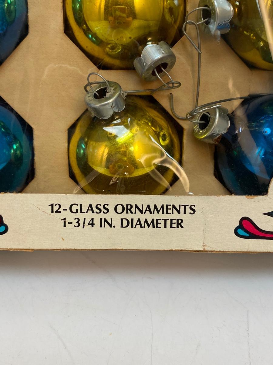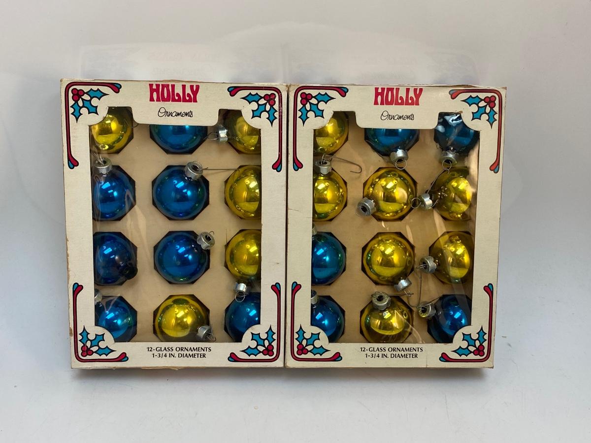 Vintage Holly Mixed Lot of Blue & Gold Glass Christmas Holiday Tree Ornaments