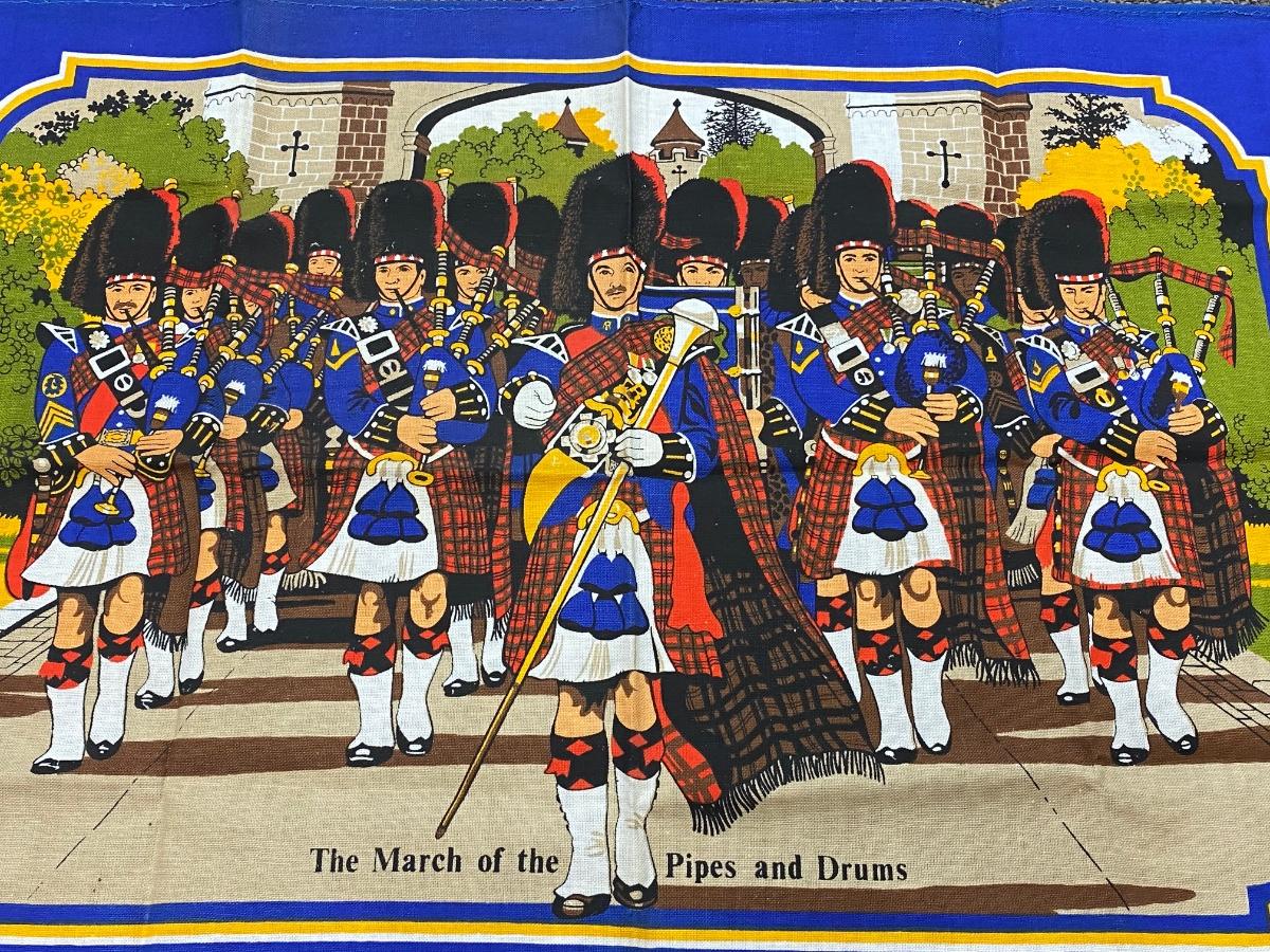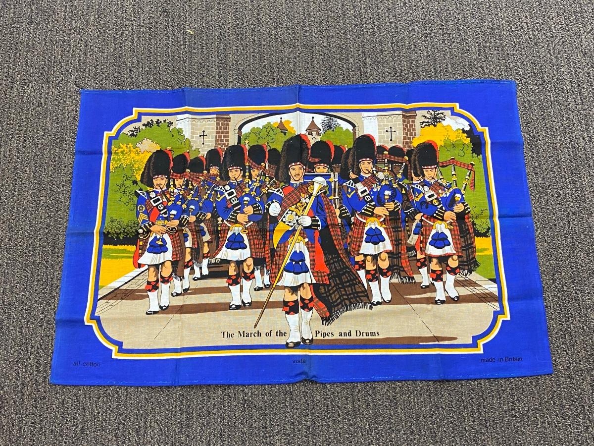Vintage Frameable The March of the Pipes and Drums British Guard Tea Towel