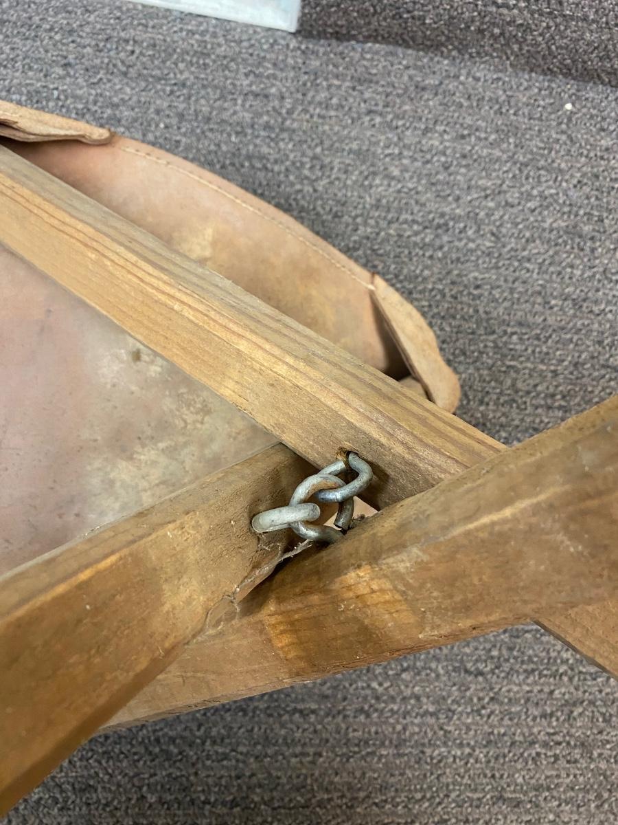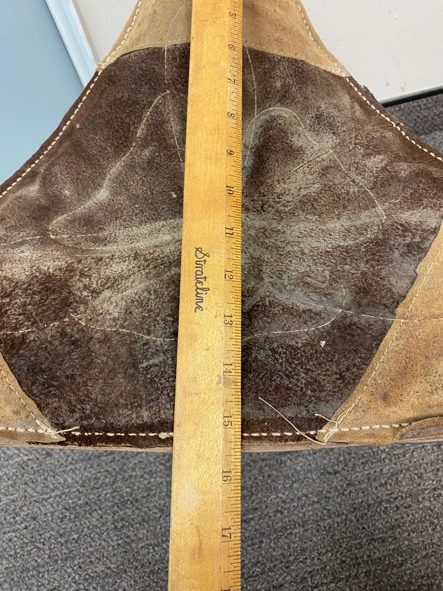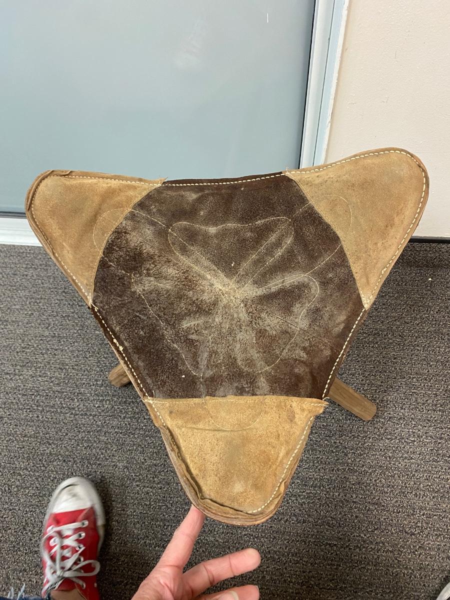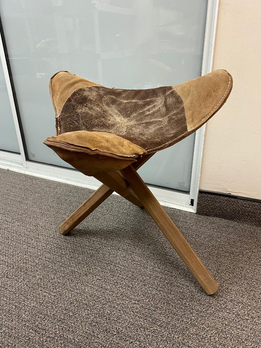 Vintage Tooled Leather Seat Tripod Folding Camp Stool Saddle Seat Chair Mid-Century