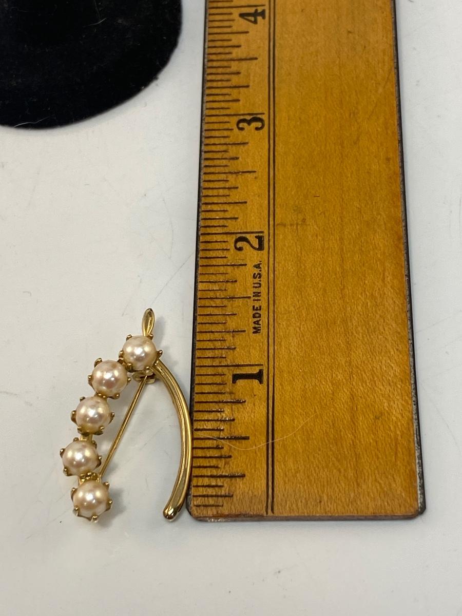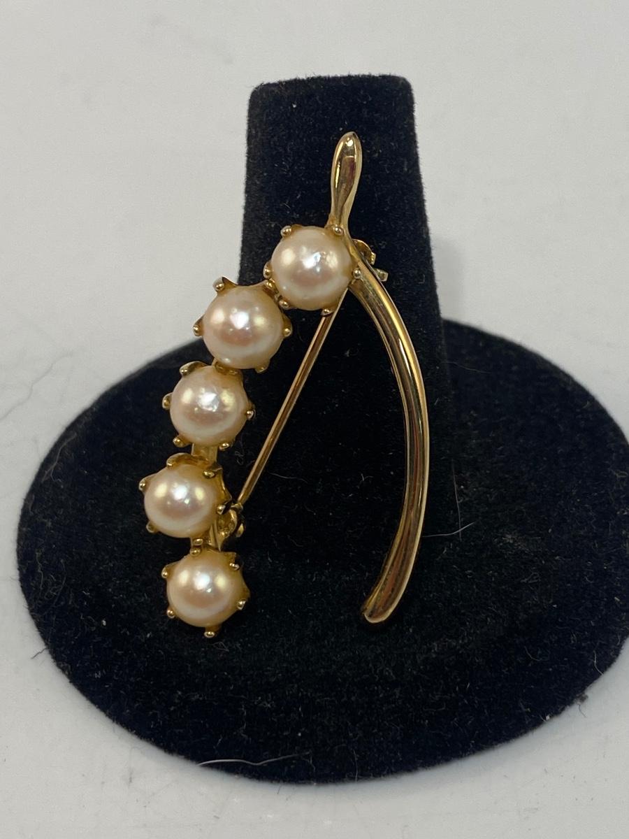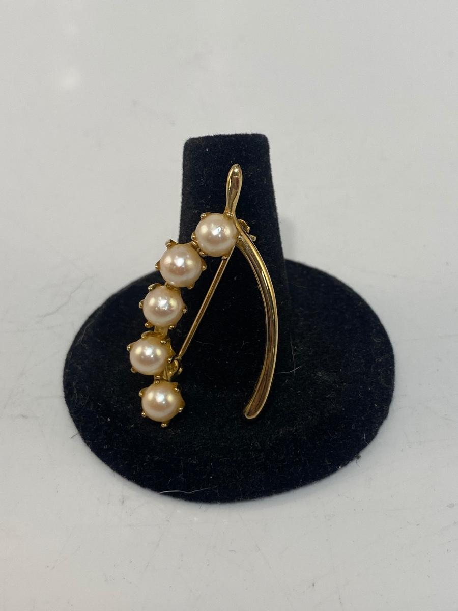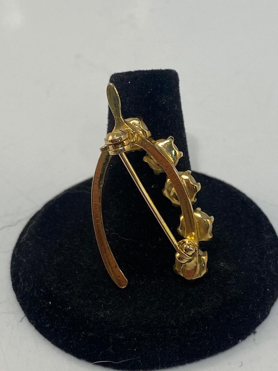 Vintage Gold Tone & Faux Pearl Wishbone Shaped Brooch Pin Unbranded Costume Fashion Jewelry