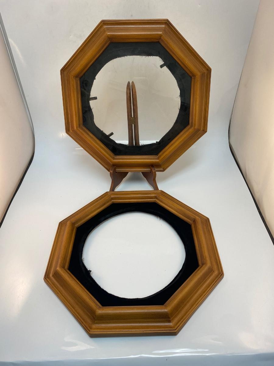 Pair of Octagon Collector Plate Frames One Missing Glass. Made to hold collector plates, could be repurposed.