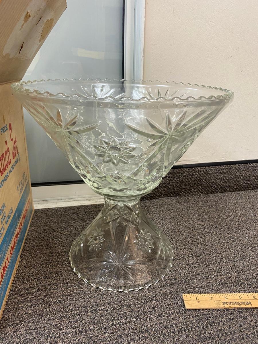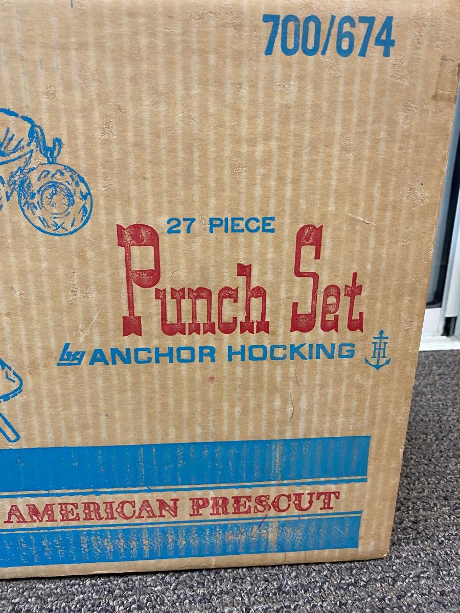 Vintage Anchor Hocking Punch Bowl Set in Original Box Early American Prescut