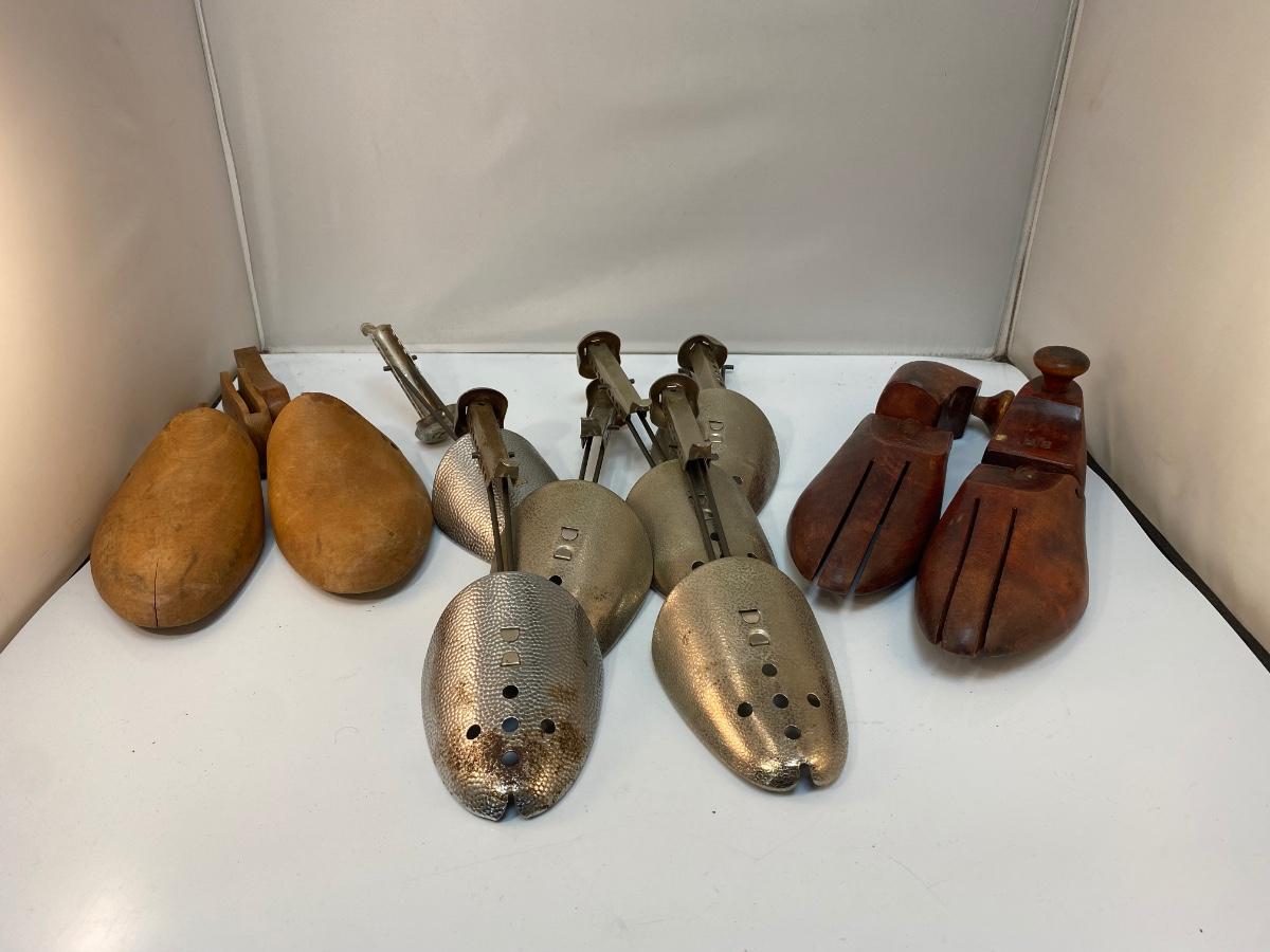 Mixed Lot of Vintage Shoe Form Stretchers Wood & Metal. Good for use or display. The lighter wood ones need a adjustment peg replaced.