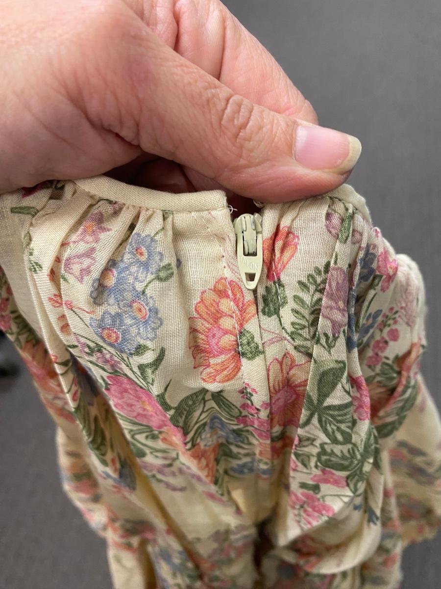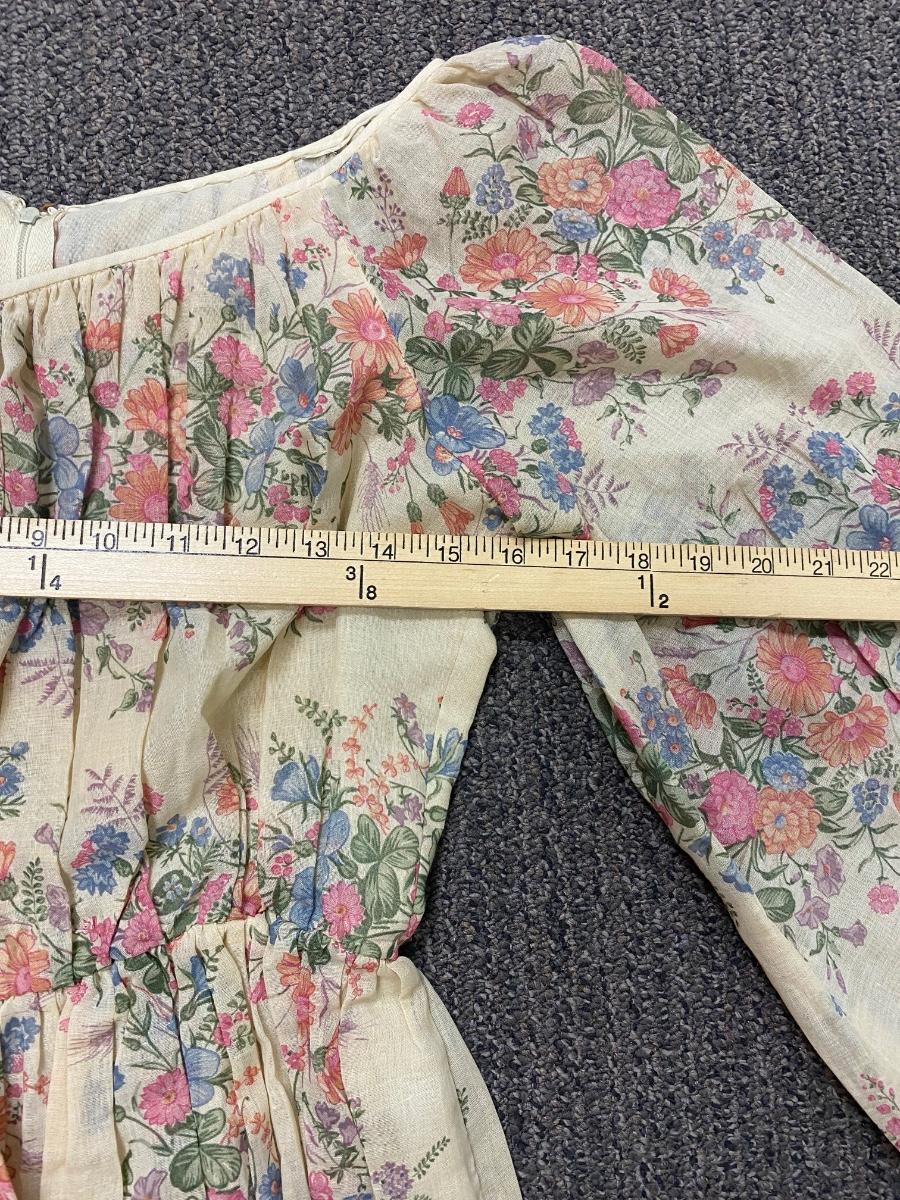 Vintage Prairie Style Full Sleeve Floral Maxi Dress Rona New York. In fair condition. There is a spill stain down the front below waist, kind of blends in because of pleats, unsure if it will lighten with wash. No holes. 13" waist and 16" armpit.