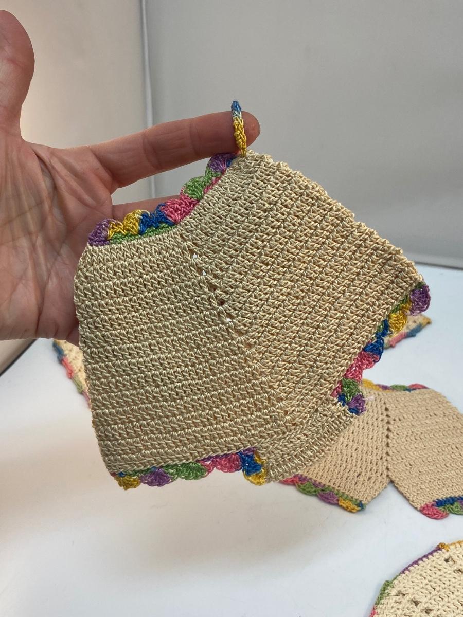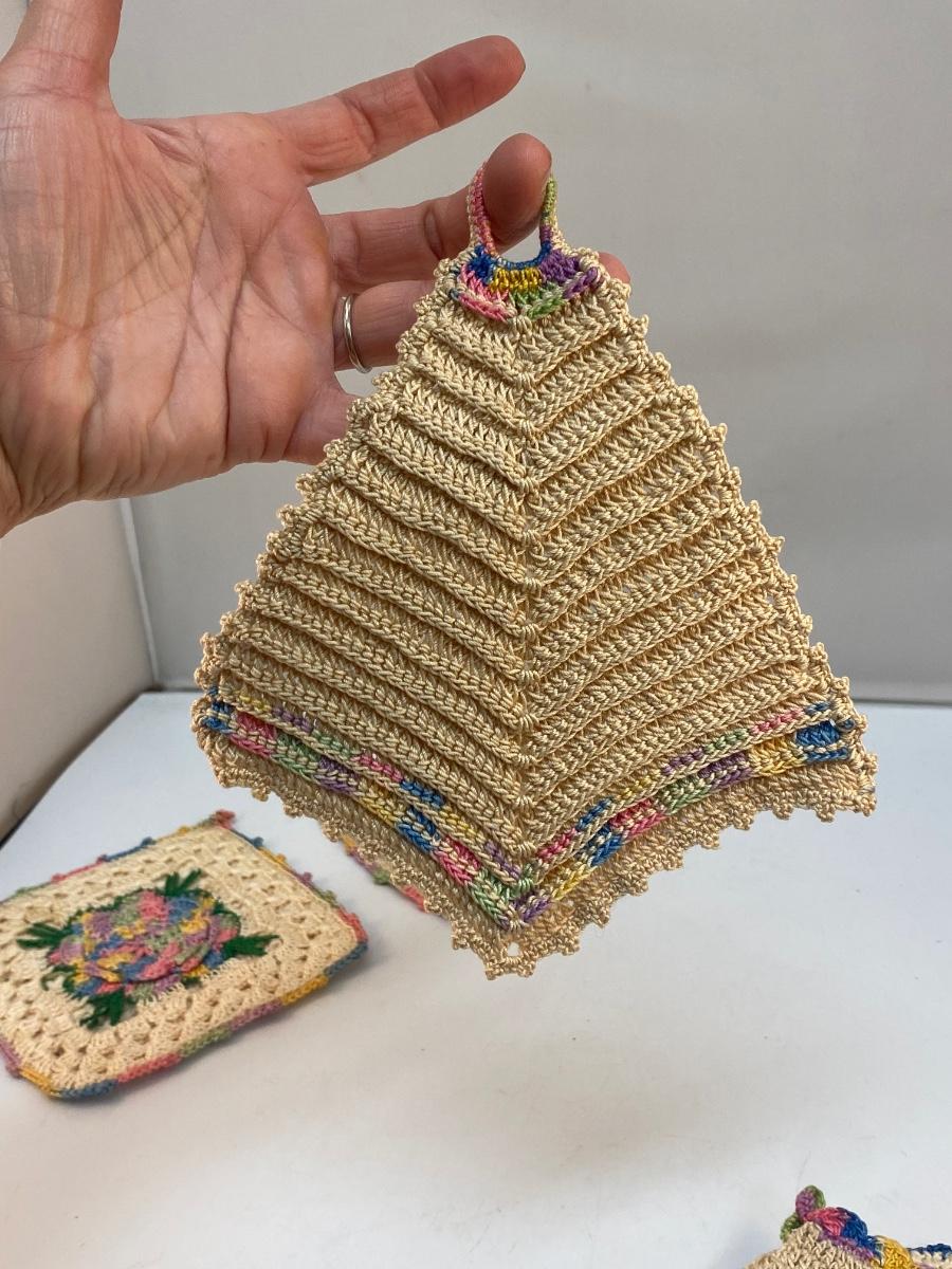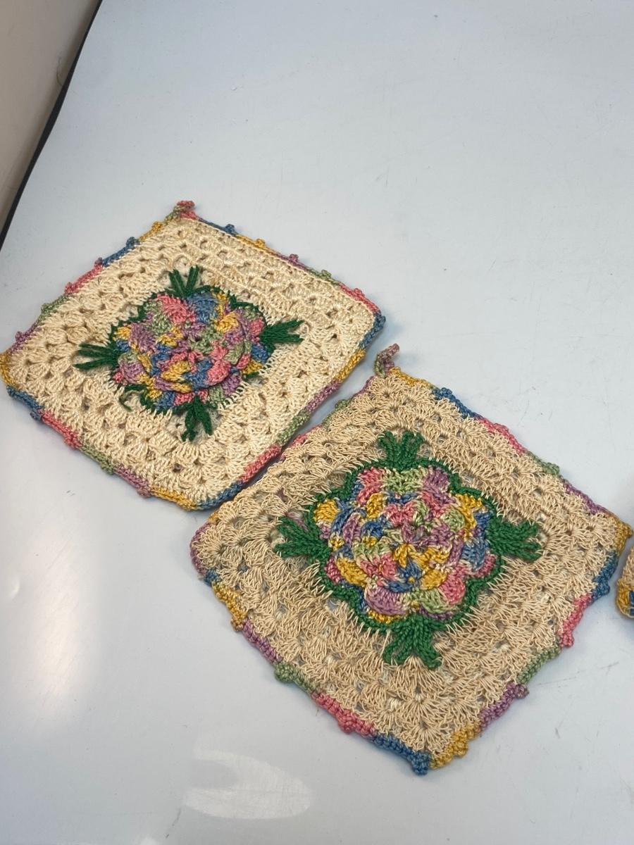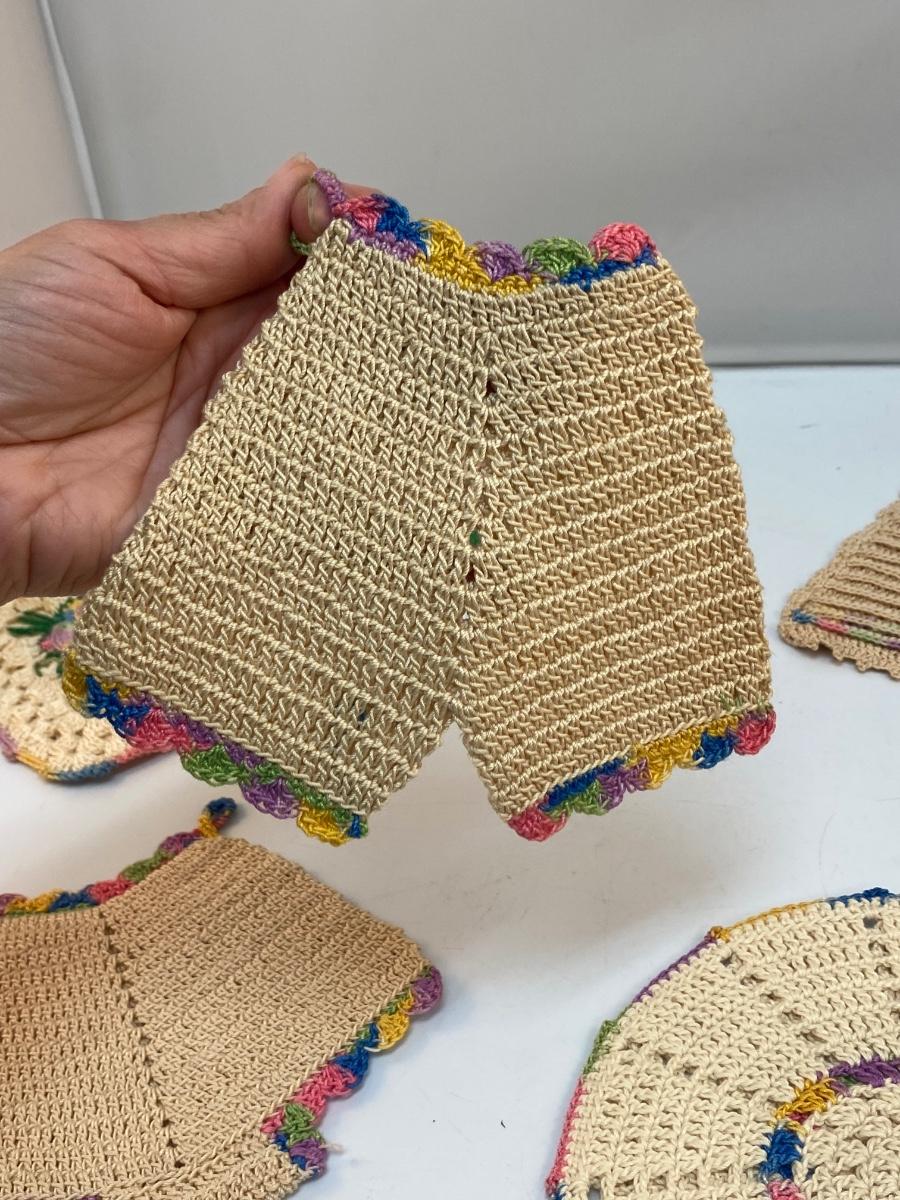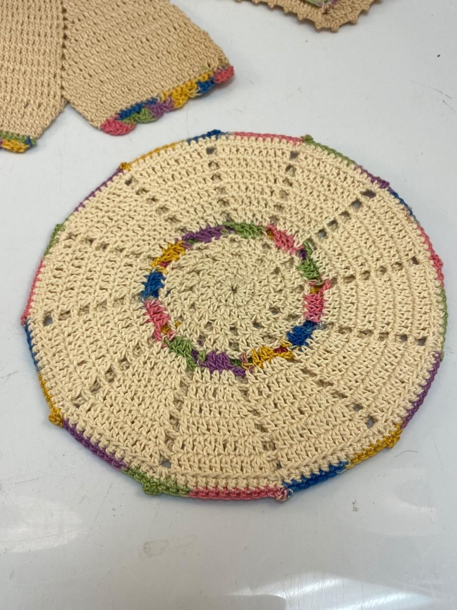 Lot of 6 Rainbow Edge Crochet Knit Doily Trivets Potholders