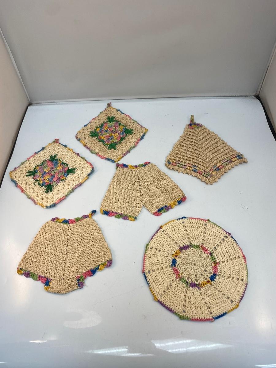 Lot of 6 Rainbow Edge Crochet Knit Doily Trivets Potholder. In good vintage condition. May have light discolor, but no stains or holes. Nicely made.