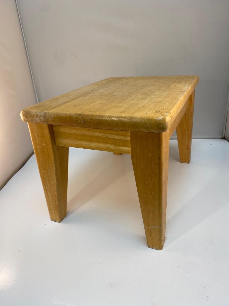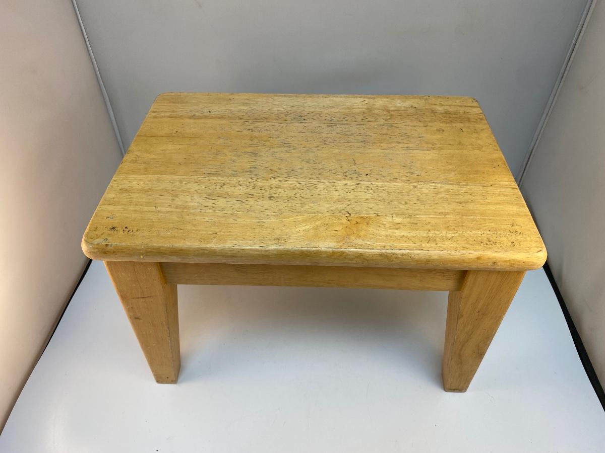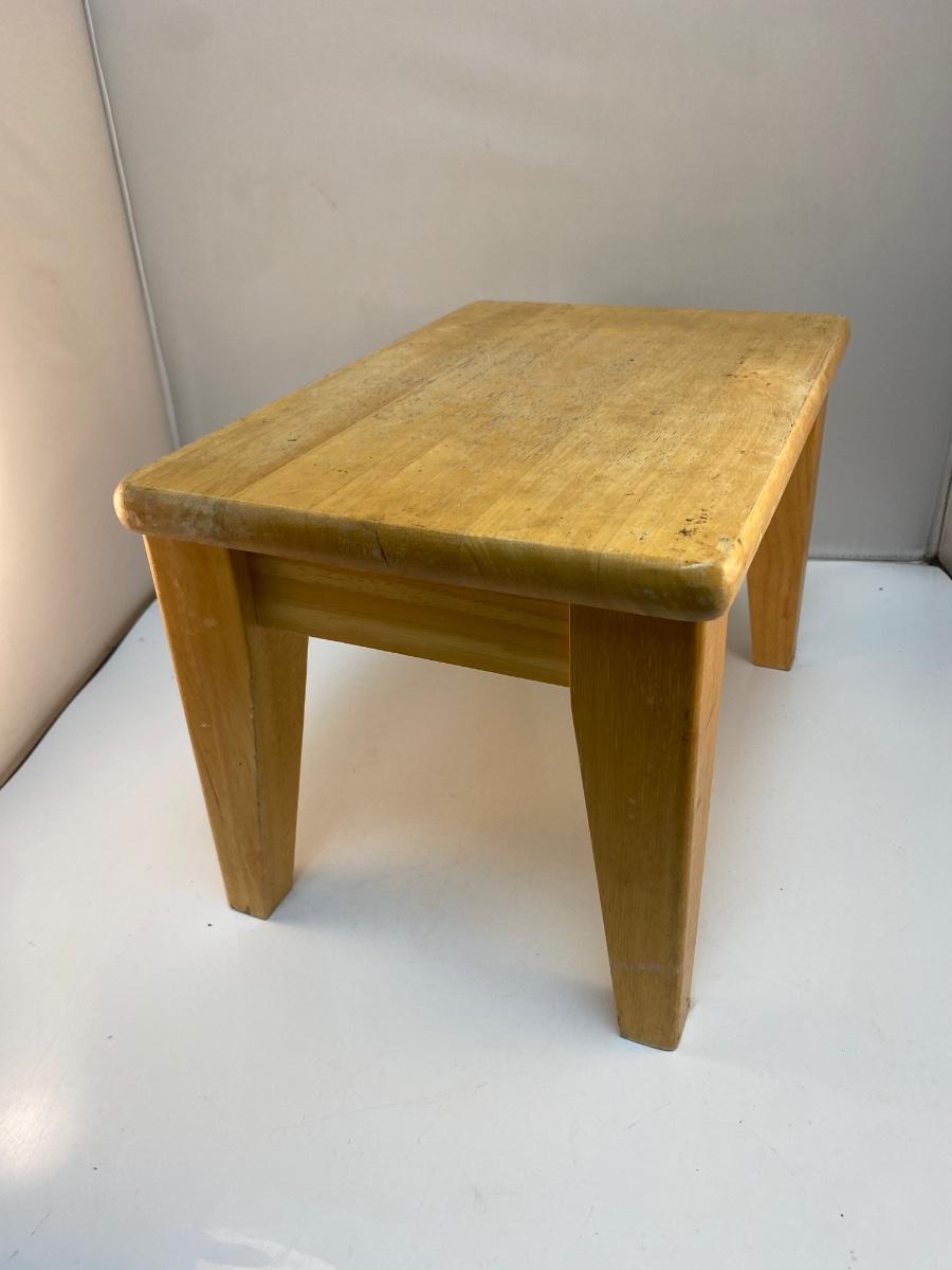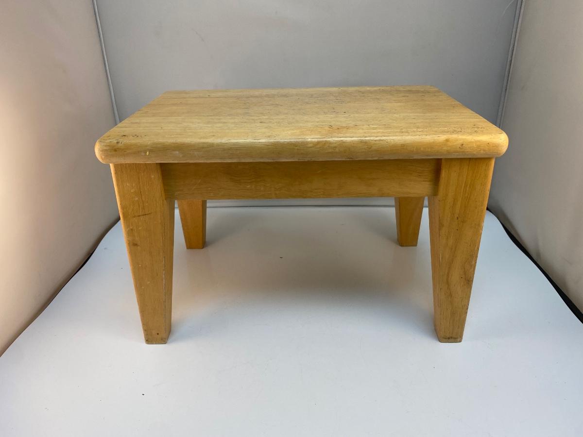 Small Light Finish Step Stool Ottoman Seat. Light wear from use. 9"x14" size.