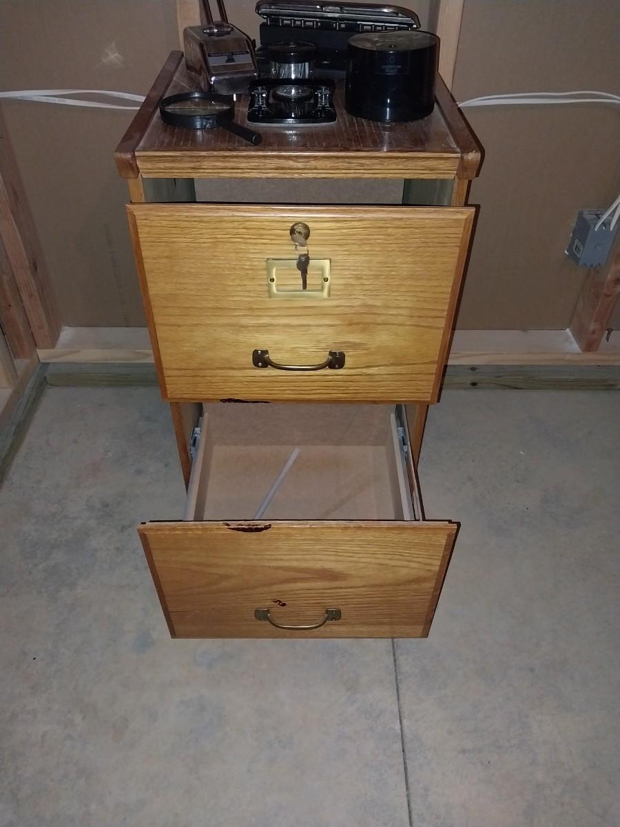 2 DRAWER LOCKING WOODEN FILING CABINET AND MORE