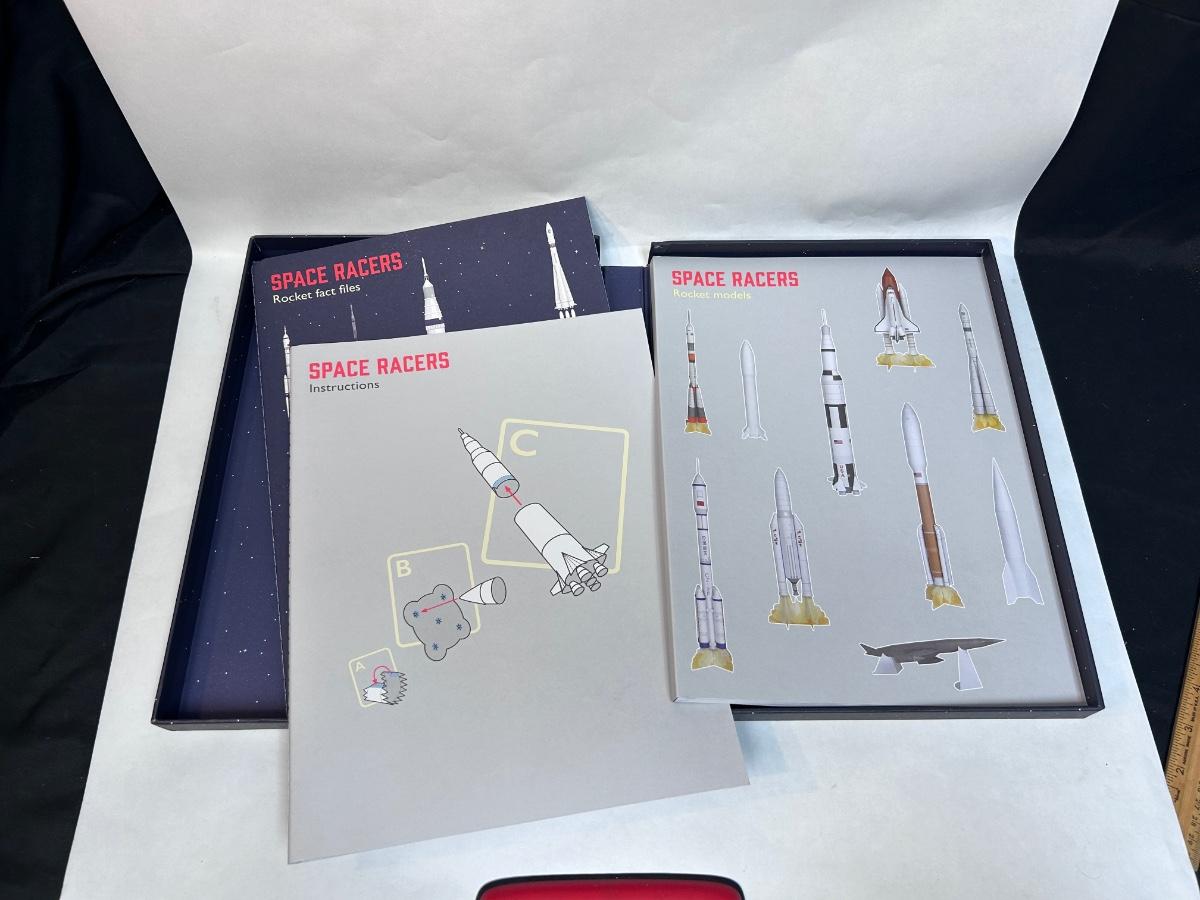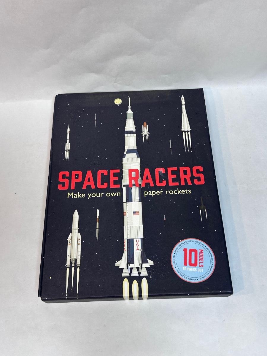 Space Racers 10 Model Make your Own Paper Rockets Unpunched. Neat paper rocket kit, 10 models, none have been removed from book. Comes with fun facts, instructions, and punch out book all in box like case. In very good condition.